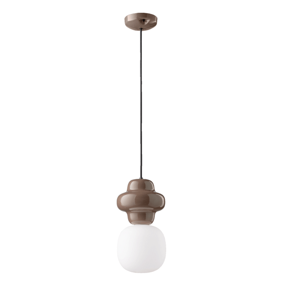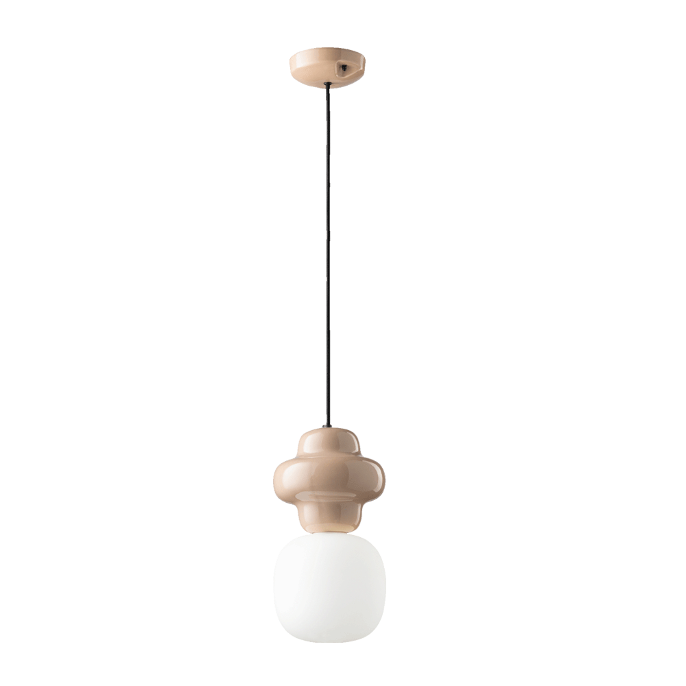 The Copacabana Suspension Light - C2681 is made in two parts: the round upper part in ceramic and the lower part in white satin glass. The design is inspired by the Roberto Marx designed modernist mosaic tiles on the pavements next to Copacabana beach in Rio de Janeiro.