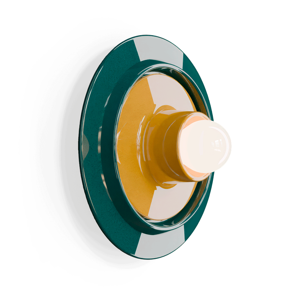 The Voilà Wall Light - C2775 draws its name from the gesture "voilà" - or "done" - which perfectly captures the final, skilful motion of a ceramicist lifting a piece from its mould. Voilà is made of two concentric elements - glazed in contrasting colours - which fit together flawlessly, like two high-precision mechanical components.