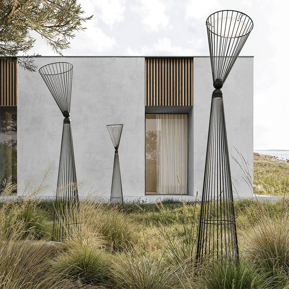 The design of the Ikonika Floor Light aims to balance lightness and strength. The light features two bouquets of light metal rods emanating from a small metal ring to create the shade and the base. It is a simple and effective design which works well both at home and in public spaces. The Ikonika Floor Light is available both in indoor and outdoor versions.
