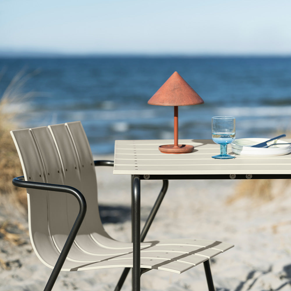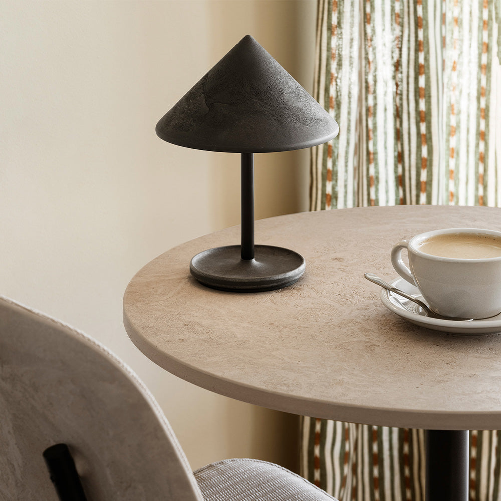 The Terra Portable Table Light, designed by OEO Studio, features a lampshade crafted from the innovative Matek™ material, made of recycled coffee waste. The design of the light is minimalist, precise and timeless, while the tactility of the Matek™ material lends the series a fresh and intriguing expression. The lamp is three steps dimmable (100%, 50%, 20%) and has a 10-hour capacity when fully charged (6 hours charging time).