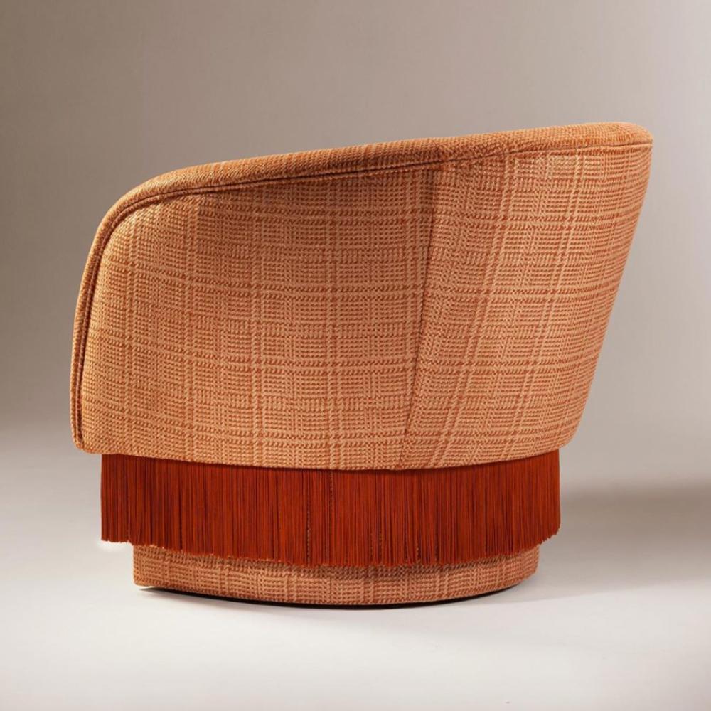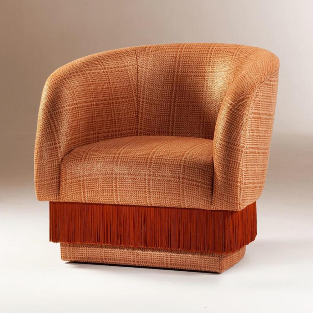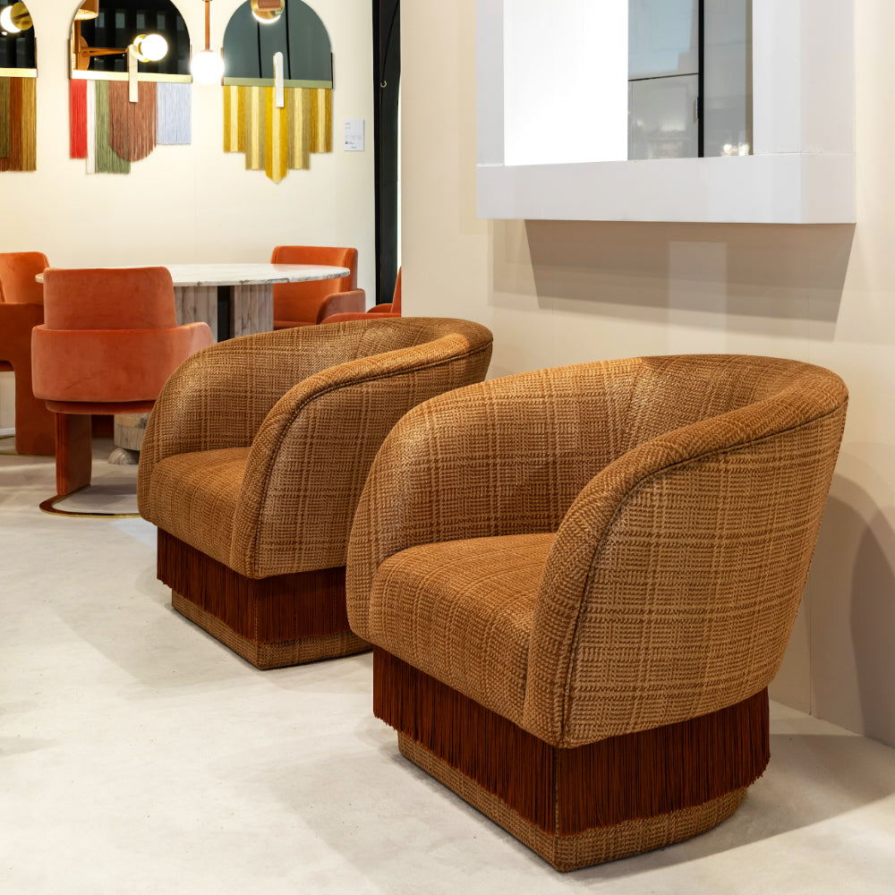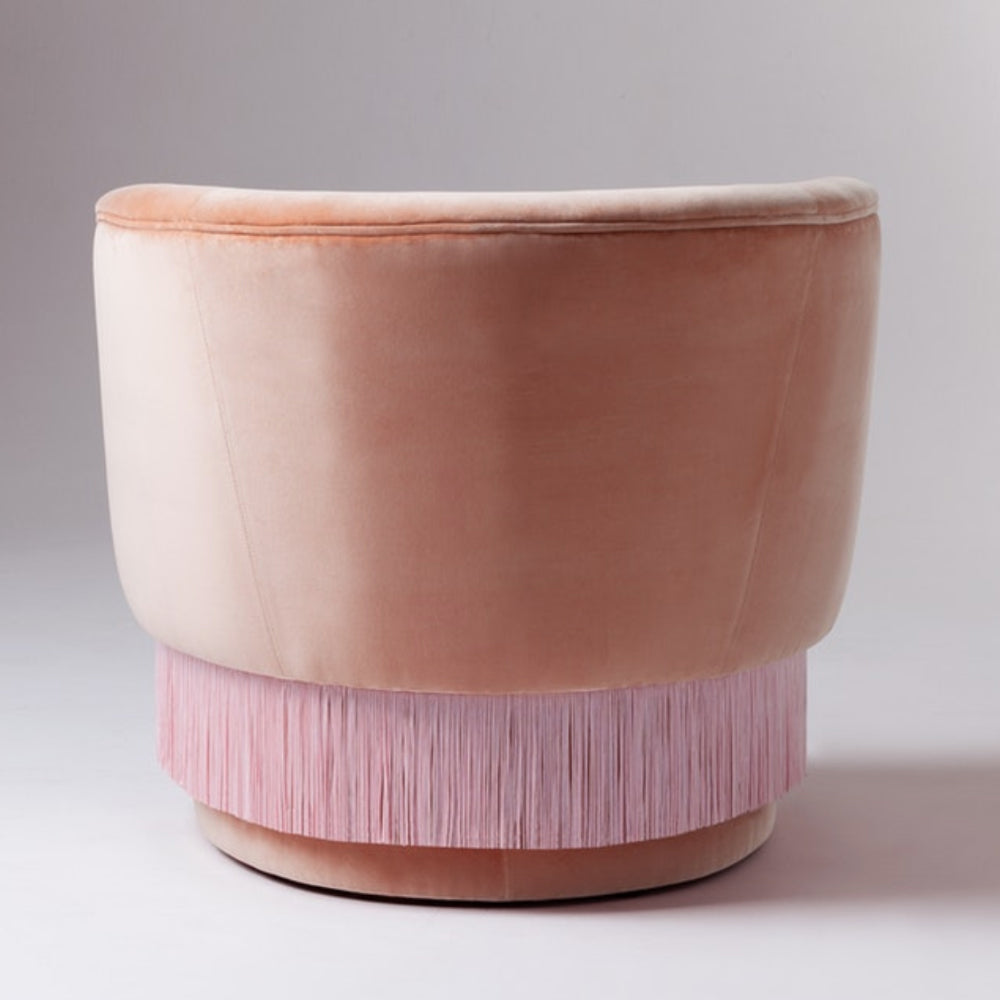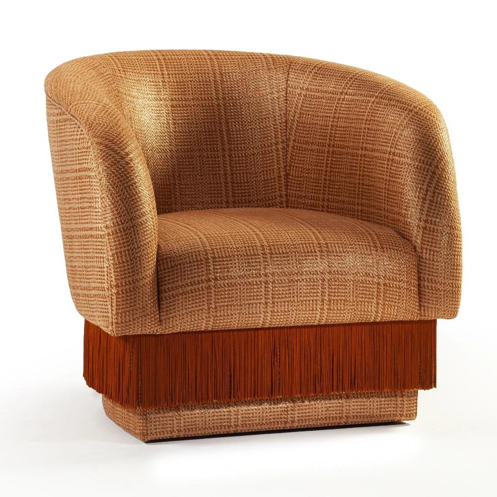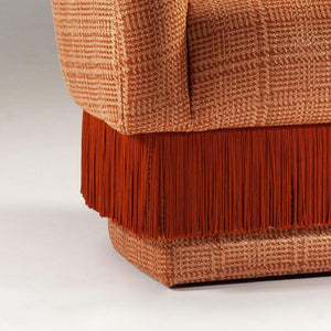 La Folie Armchair is a sensuous and elegant armchair: its voluptuous curves and playful fringes are inspired by the glamour of a burlesque show at the Moulin Rouge. La Folie Armchair and La Folie Pouf are the perfect complements.