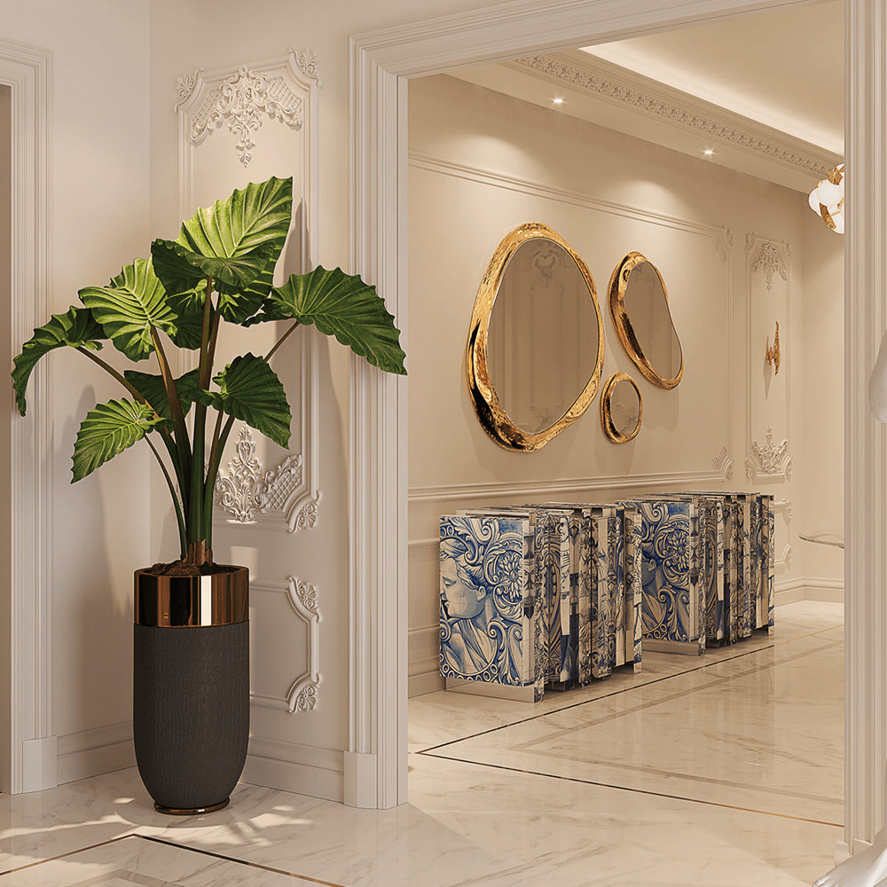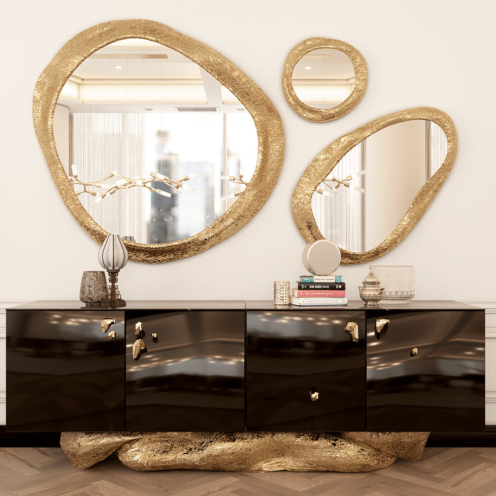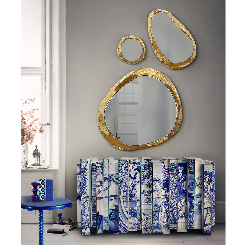 The Halo Collection is a luxurious series mirrors who's name is inspired by the phenomenon produced by light interacting with ice crystals suspended in the atmosphere. Halos can takes many shapes, ranging from coloured or white rings to arcs and dots in the sky. Composed by a set of three mirrors, the Halo allows different displays and creative settings.