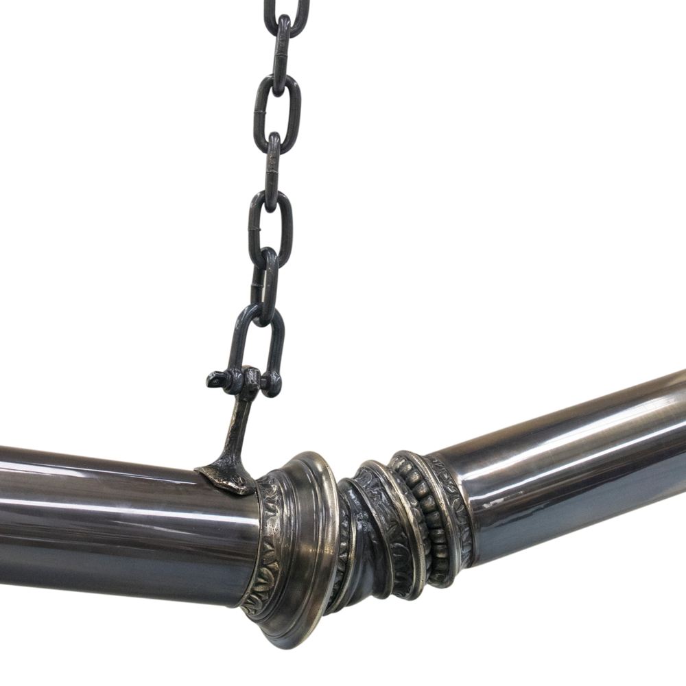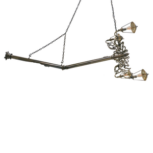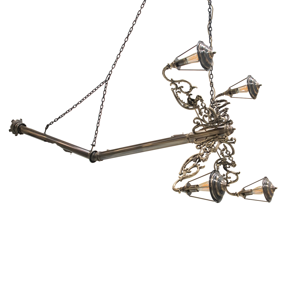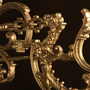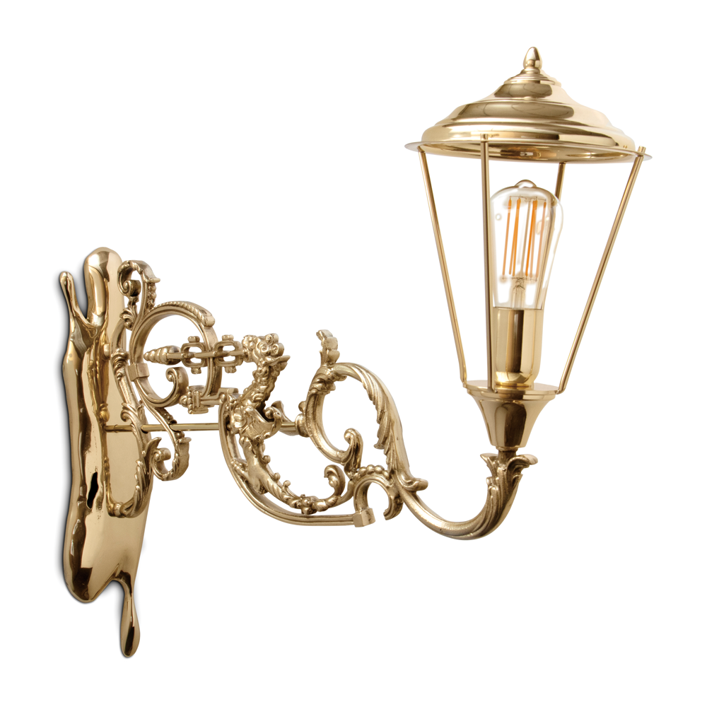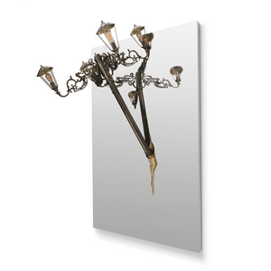 The Lumiere Collection is an extravagant series of lights and mirrors inspired by the Victorian era, where industrial details collide with excessive ornamentation. The wall lights look as if they had burst out of the wall, leaving a golden crack in the mirror, whilst the suspension light resembles a broken street lamp being craned away.