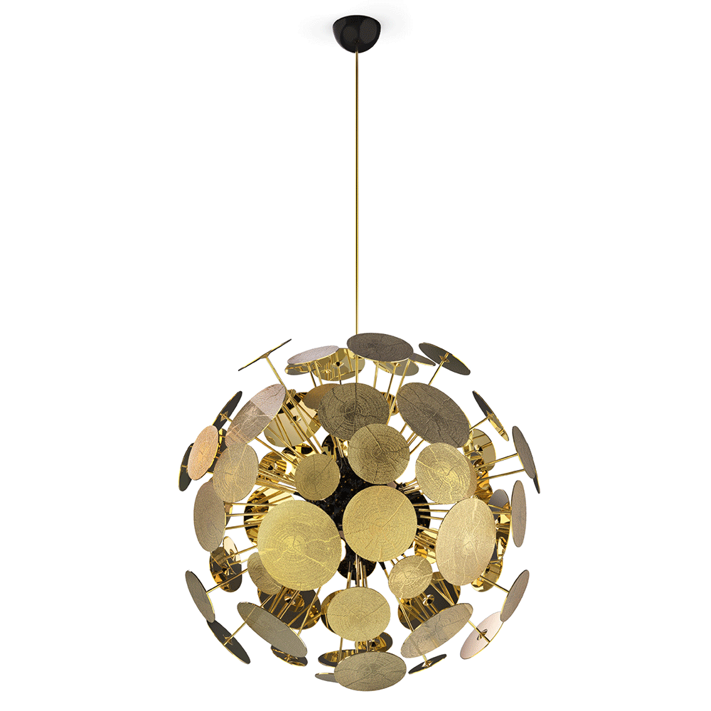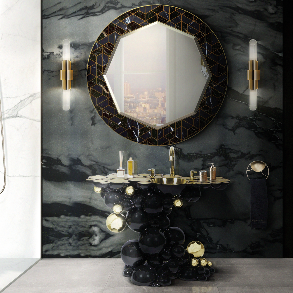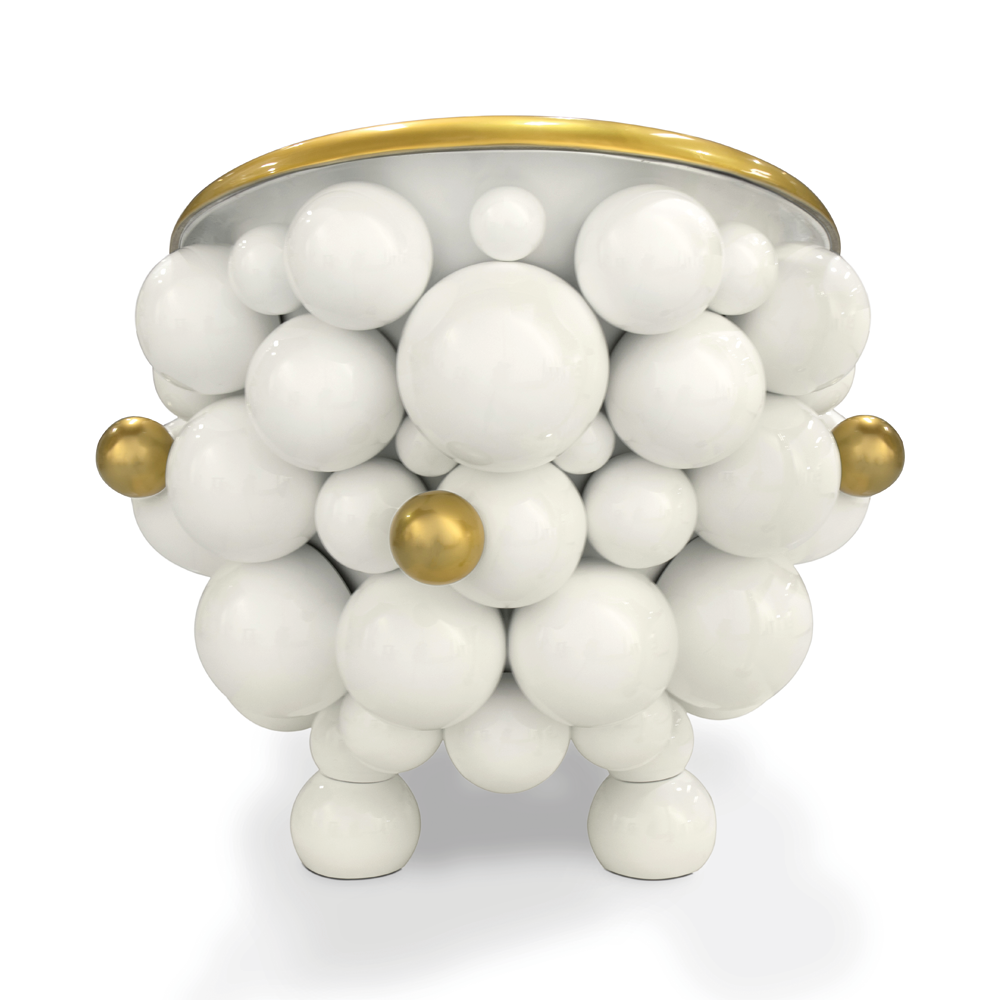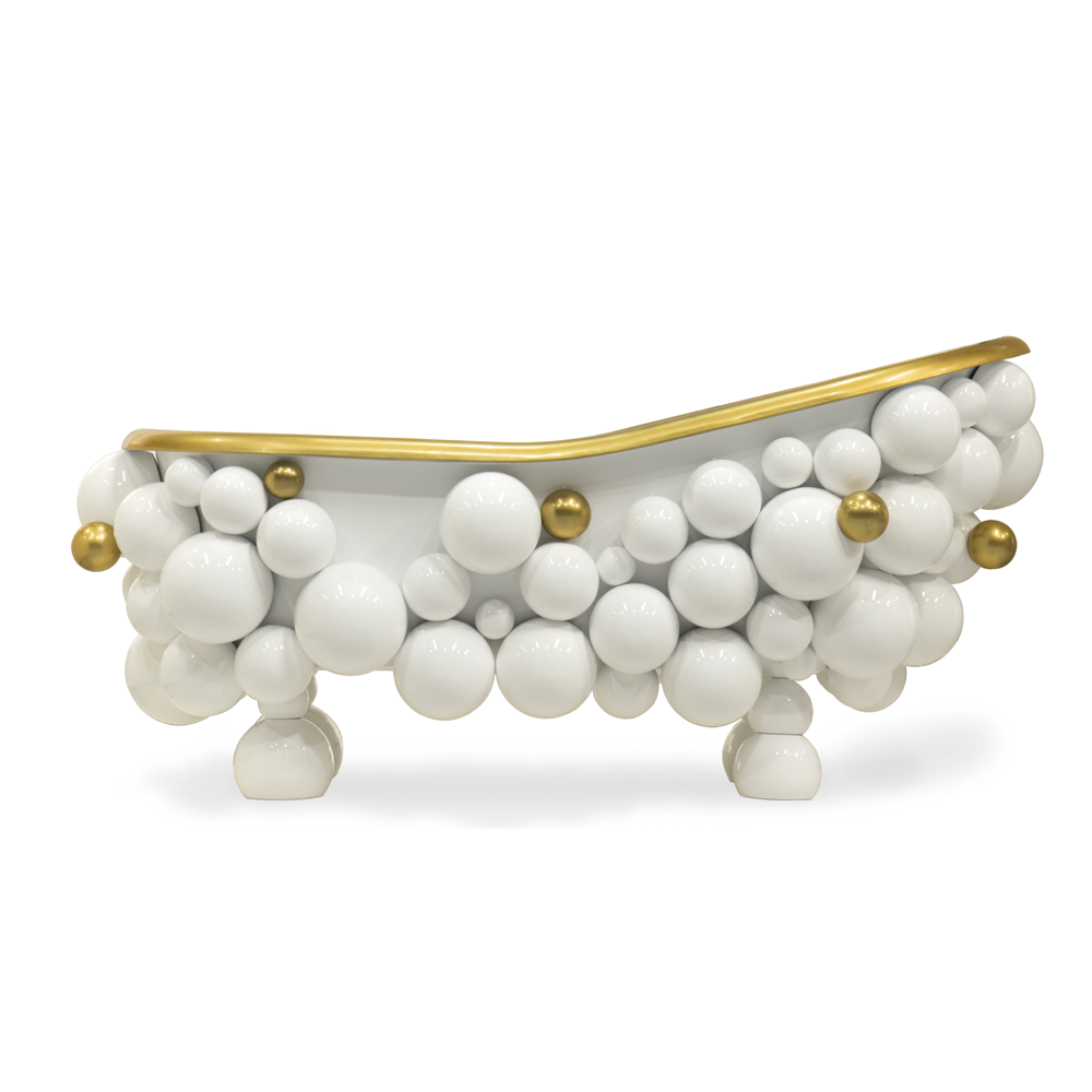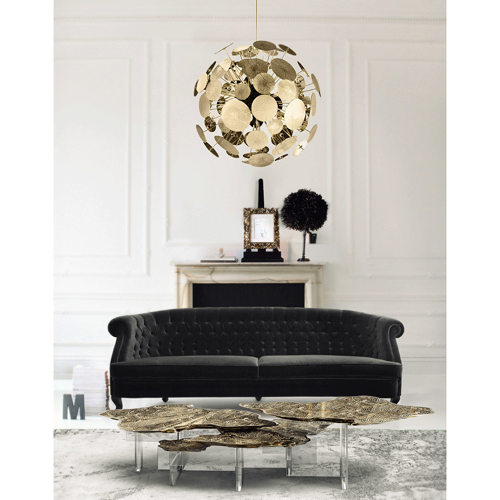 The Newton Collection is an extraordinary ensemble of tables, lights and mirrors made of hand crafted brass spheres which have been lacquered in black, gold and other finishes. The design resembles an explosion of bubbles or a cluster of atoms.