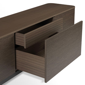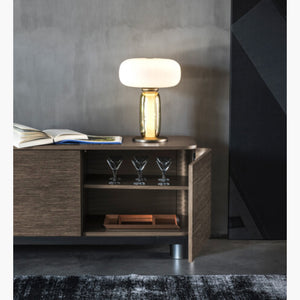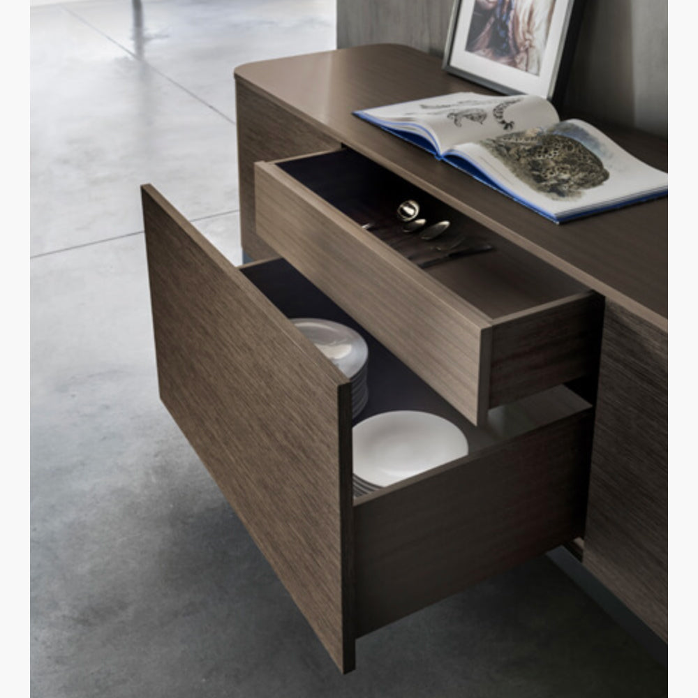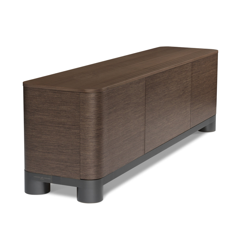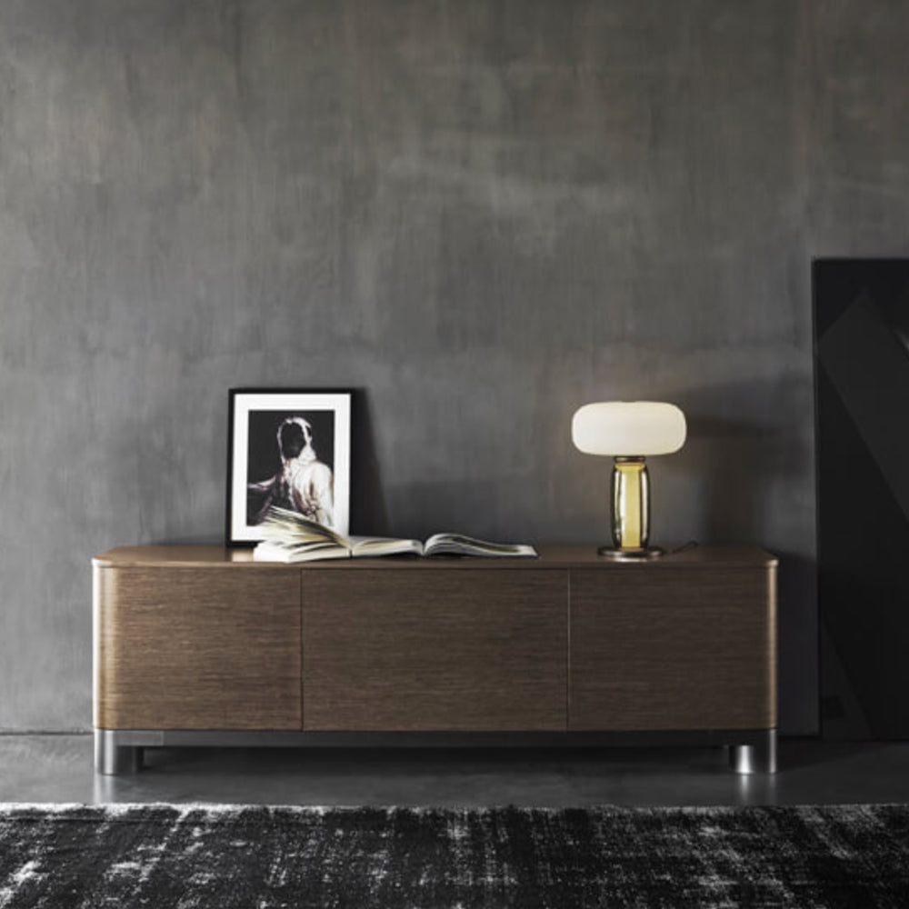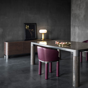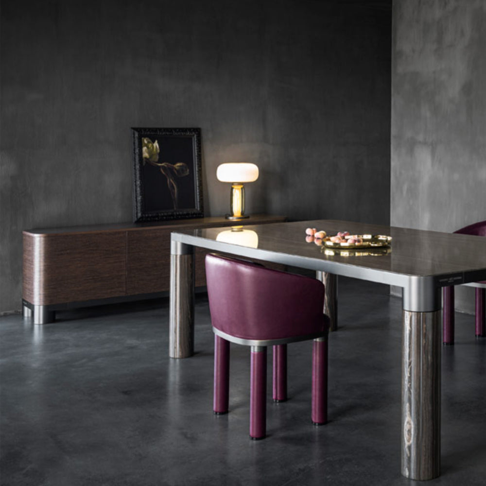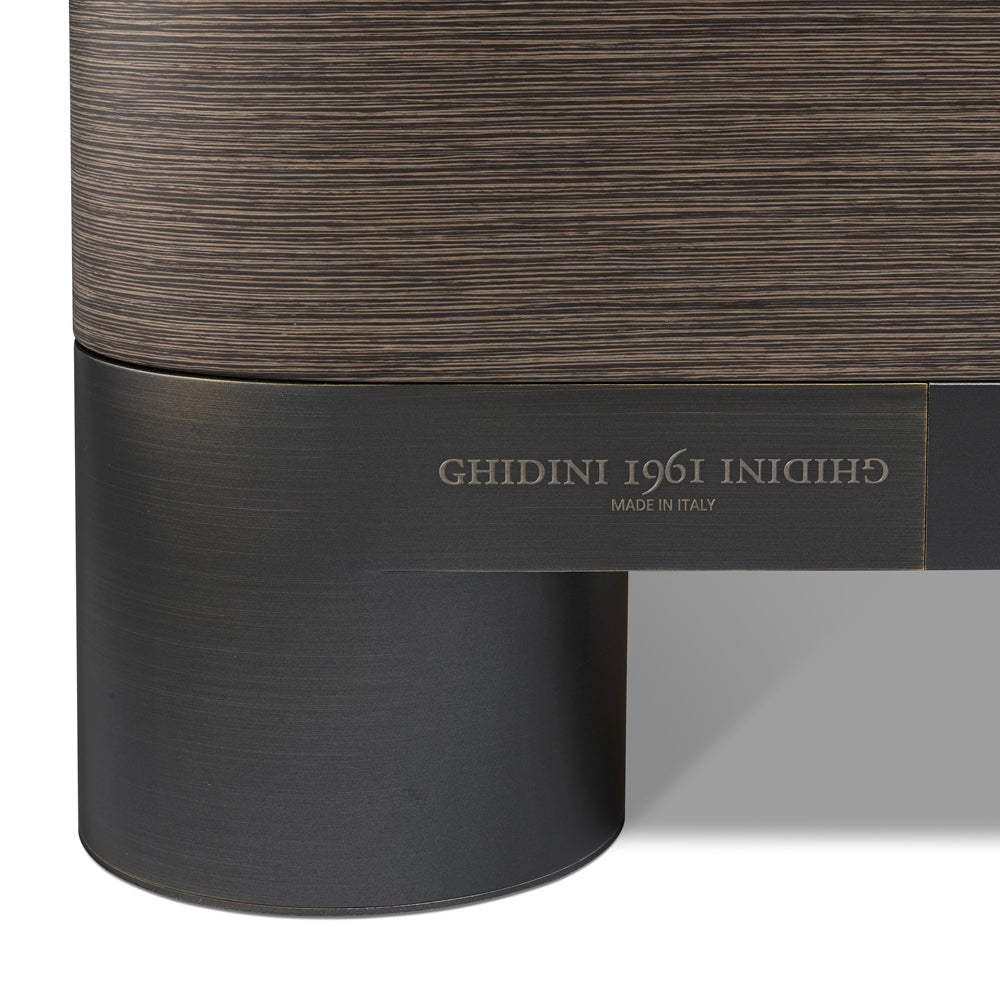The Bold Dining Cabinet features a metal rim graphically encompassing the structure, which has the effect of embellishing the luxurious materials, creating a sculptural and striking effect.