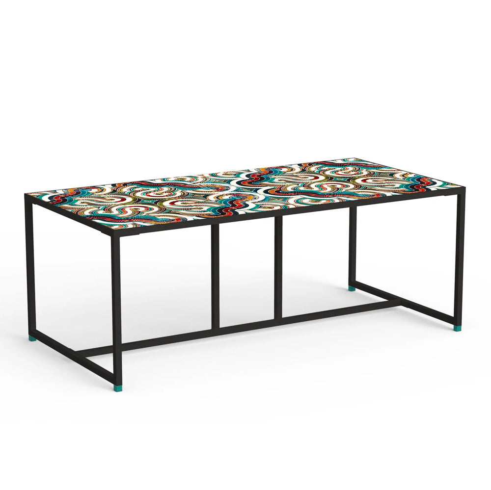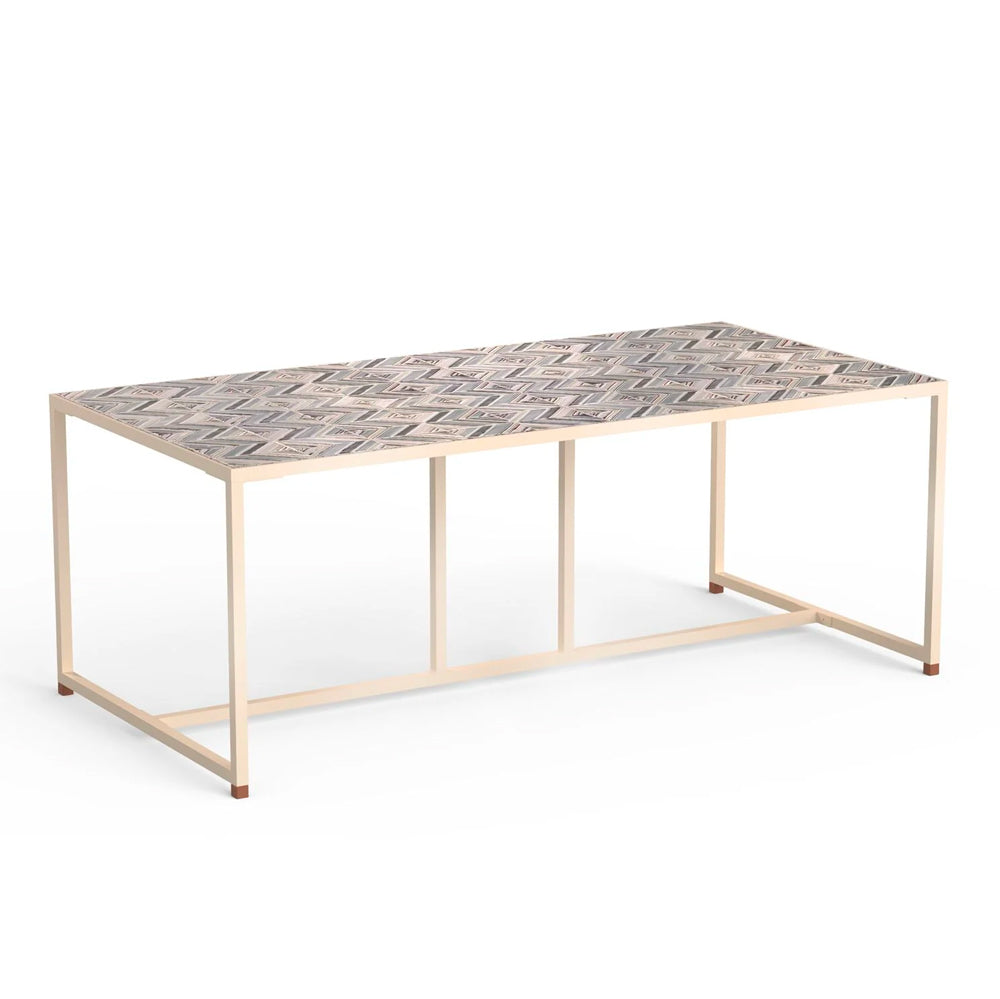 The Caldas Rectangular Dinner Table is an elegant dining table with a distinctly Mediterranean twist. The table features a top made with handmade ceramic tiles in an attractive combination of contemporary design with a rustic touch.