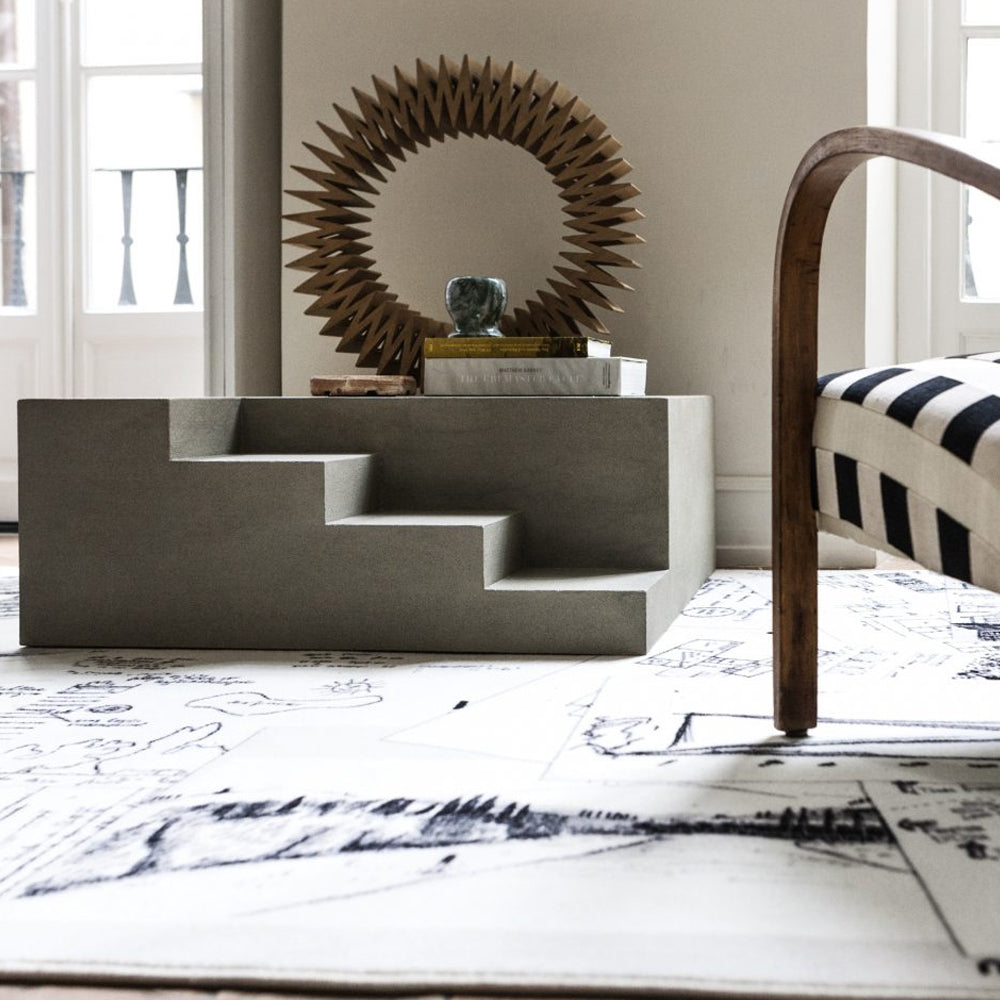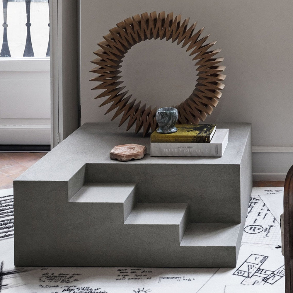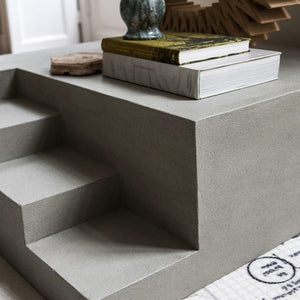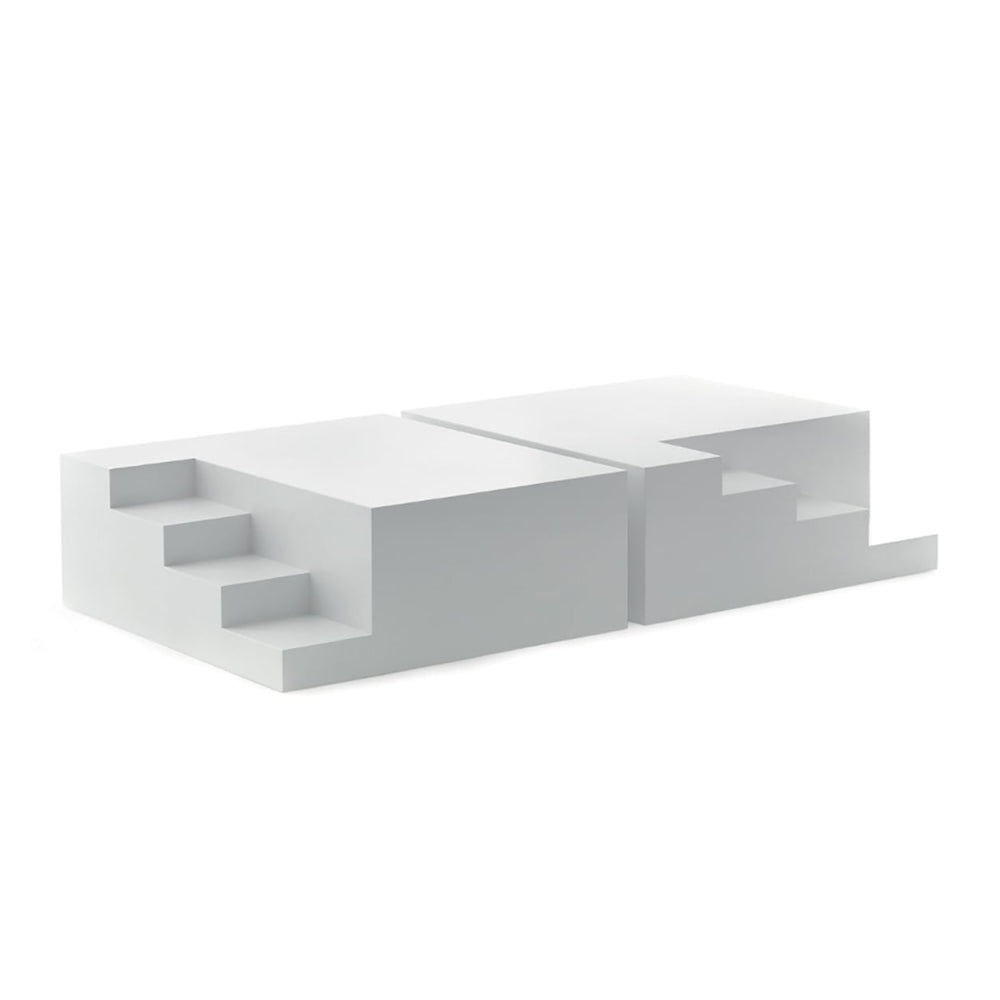 Mezzanino is a series of monolithic coffee table, plinth or TV stand in the form of a platform with stairs to the side. The stairs are great for displaying books or decorative objects and also enhances the architectural quality of the table. Mezzanino comes in a range of sizes and is available in white RAL9016 finish. The TV unit version includes one flap door and one internal shelf.