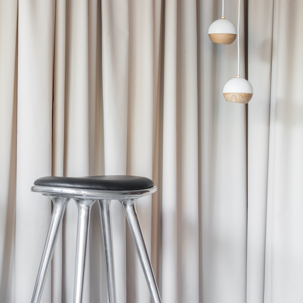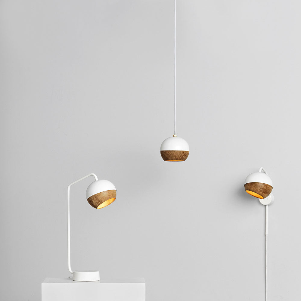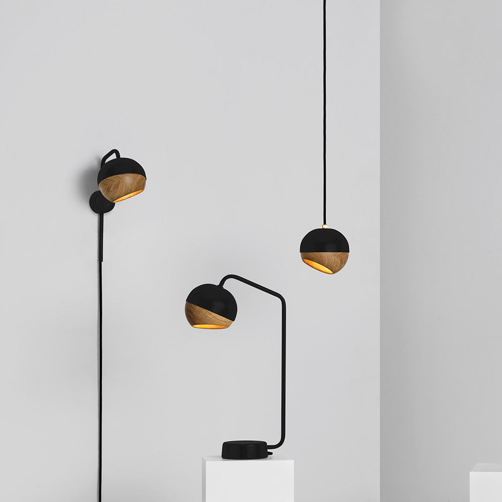 The Ray Pendant Lamp is an elegant and innovative suspension light with a strong aesthetic reference to Nordic minimalism. The lamp features a spherical steel shell with a wooden globe shade mounted inside with magnets, which enables users to position the beam of light in any direction required. The Ray Pendant can be used as a single suspension light or in multiple units to create rows or clusters.