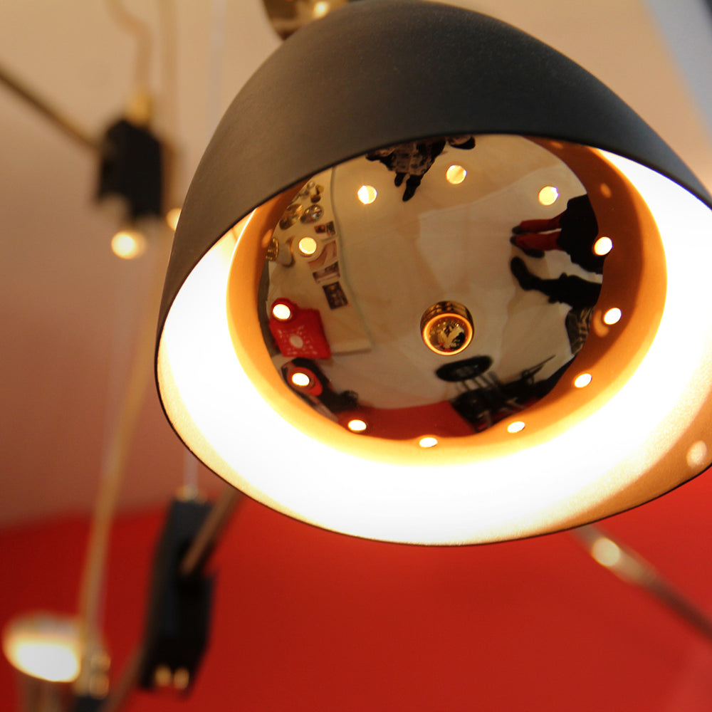 Finishes: body: black matte and gold plated; shades: glossy black and gold plated; wire: black or red; contact us for customisation possibilities