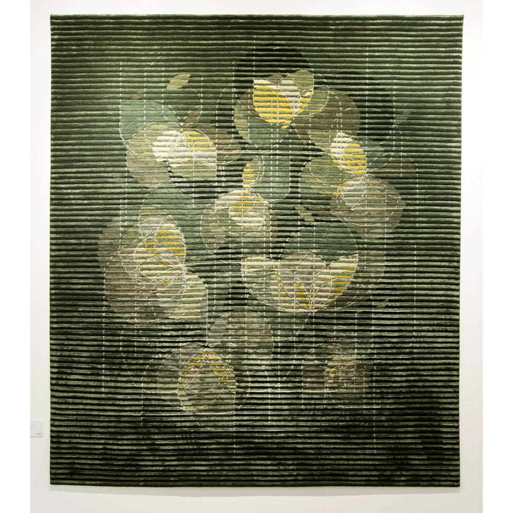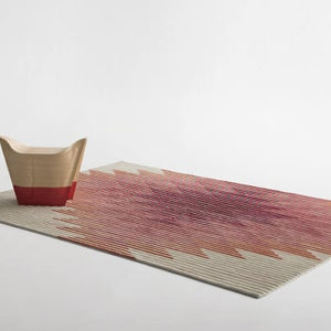 The Lake rug is a clever design which creates an optical illusion of different colours and patterns as you move across the rug, just like the changing reflections of light and colours on a lake. This effect is achieved by varying the height of the pile to create a sawtooth profile, with different colours on the two edges. The design of the pattern is based on traditional kilim designs with a contemporary touch. This unique rug has been featured in multiple magazines and is a winner of the Wallpaper* Design Award in 2015.