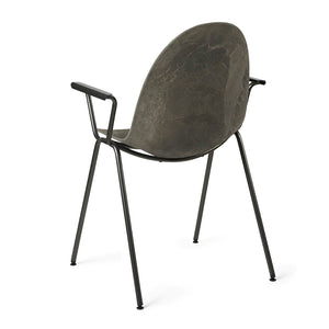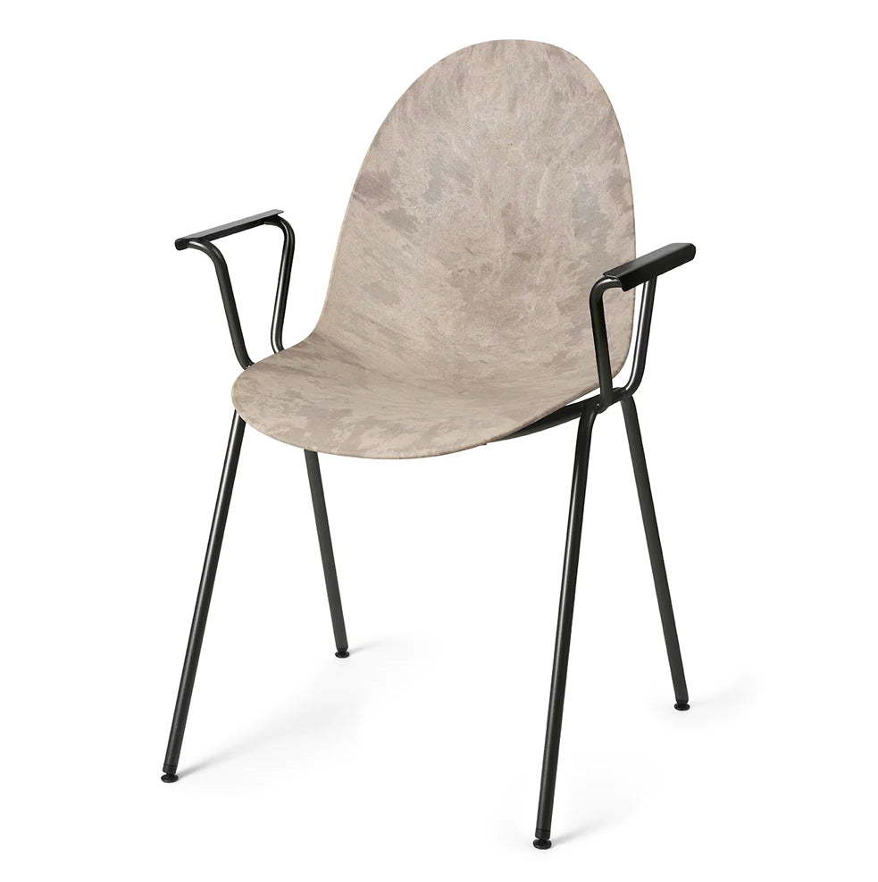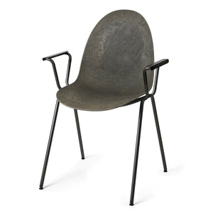 The Eternity Chair is made with a frame of 20% recycled steel and a seat and back in Matek®, an innovative material made with coffee shell or wood waste mixed with post consumer e-waste. The Eternity Chair is a very comfortable, functional stackable chair with industrial and sculptural features. The chair is designed to be disassembled at the end of its life, allowing each component in its purest form to be recycled.