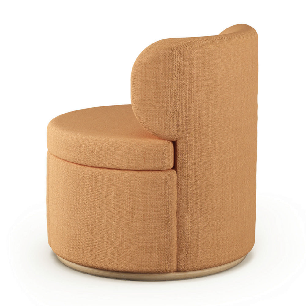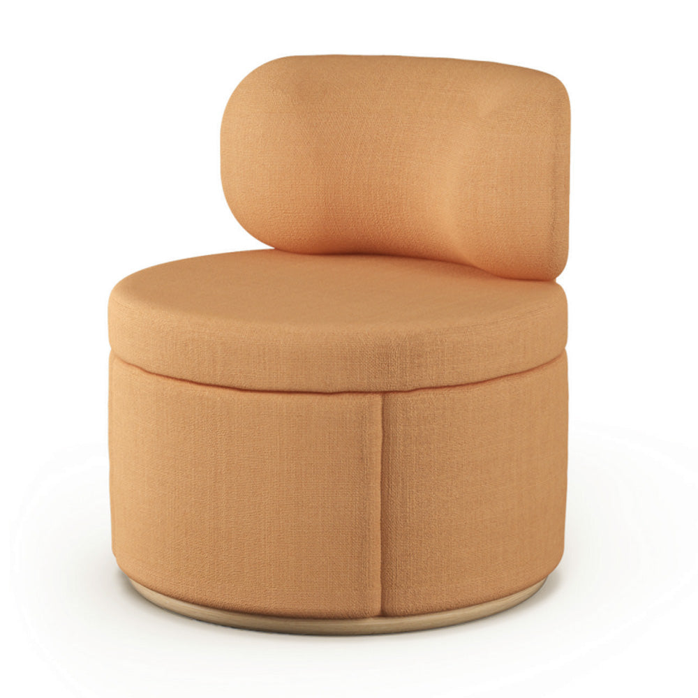 Mimi Armchair is a perfectly cylindrical swivel armchair with a timeless design which looks retro and contemporary at the same time. It has a rounded seat and backrest, fully upholstered for comfort. This petite swivel armchair works well to create a cosy vibe, whether in residential or public spaces.