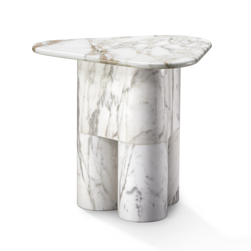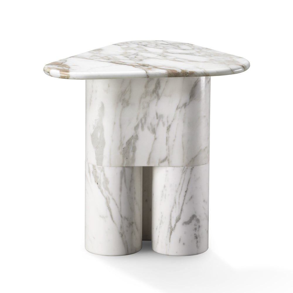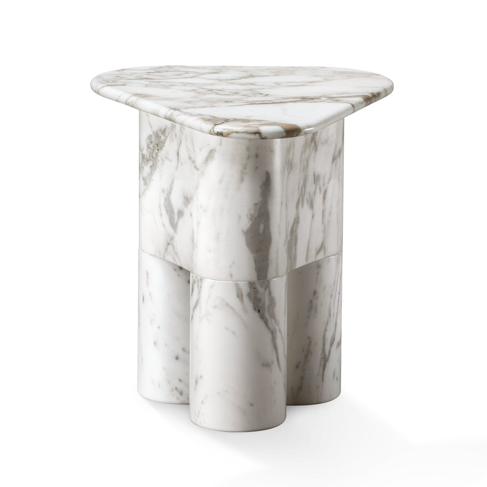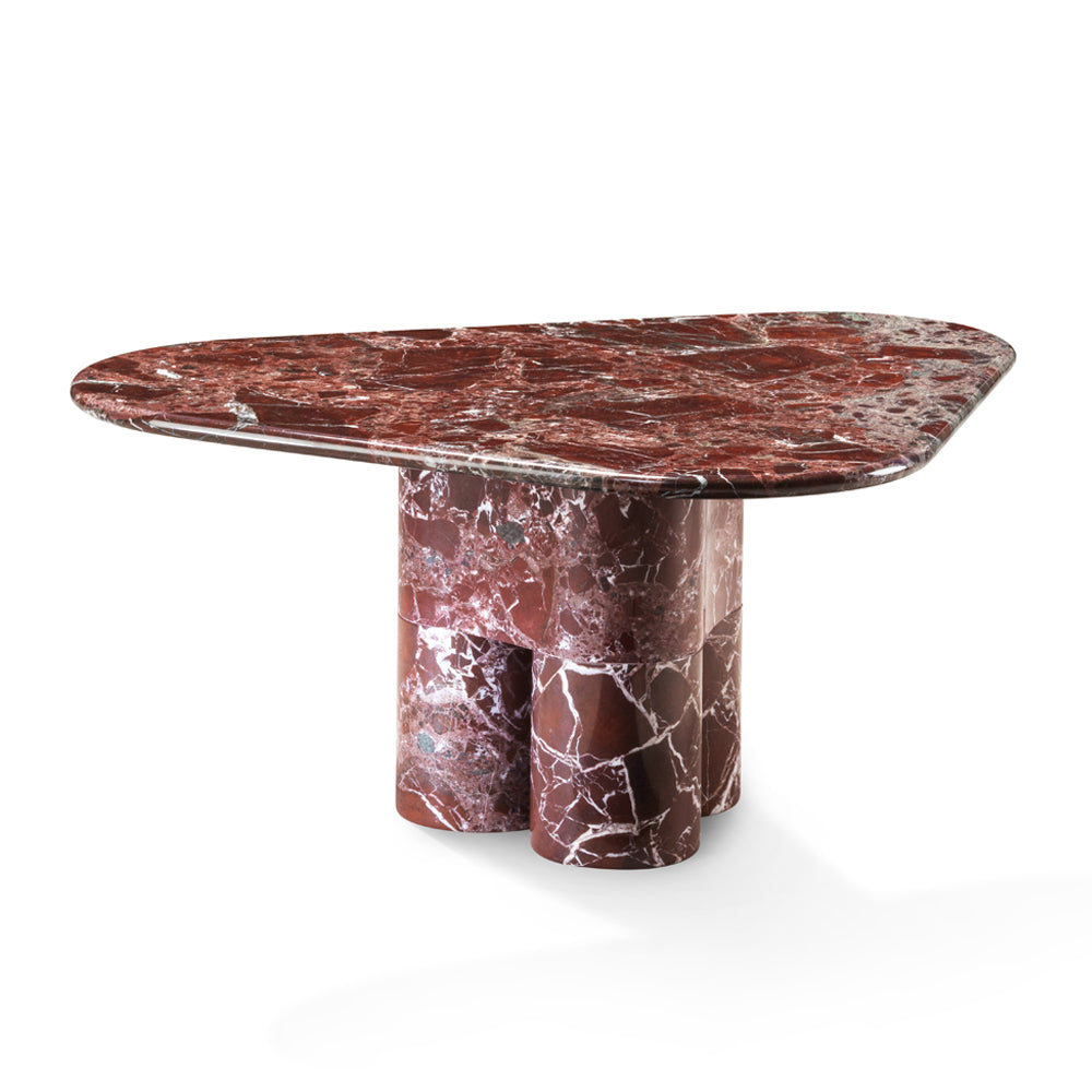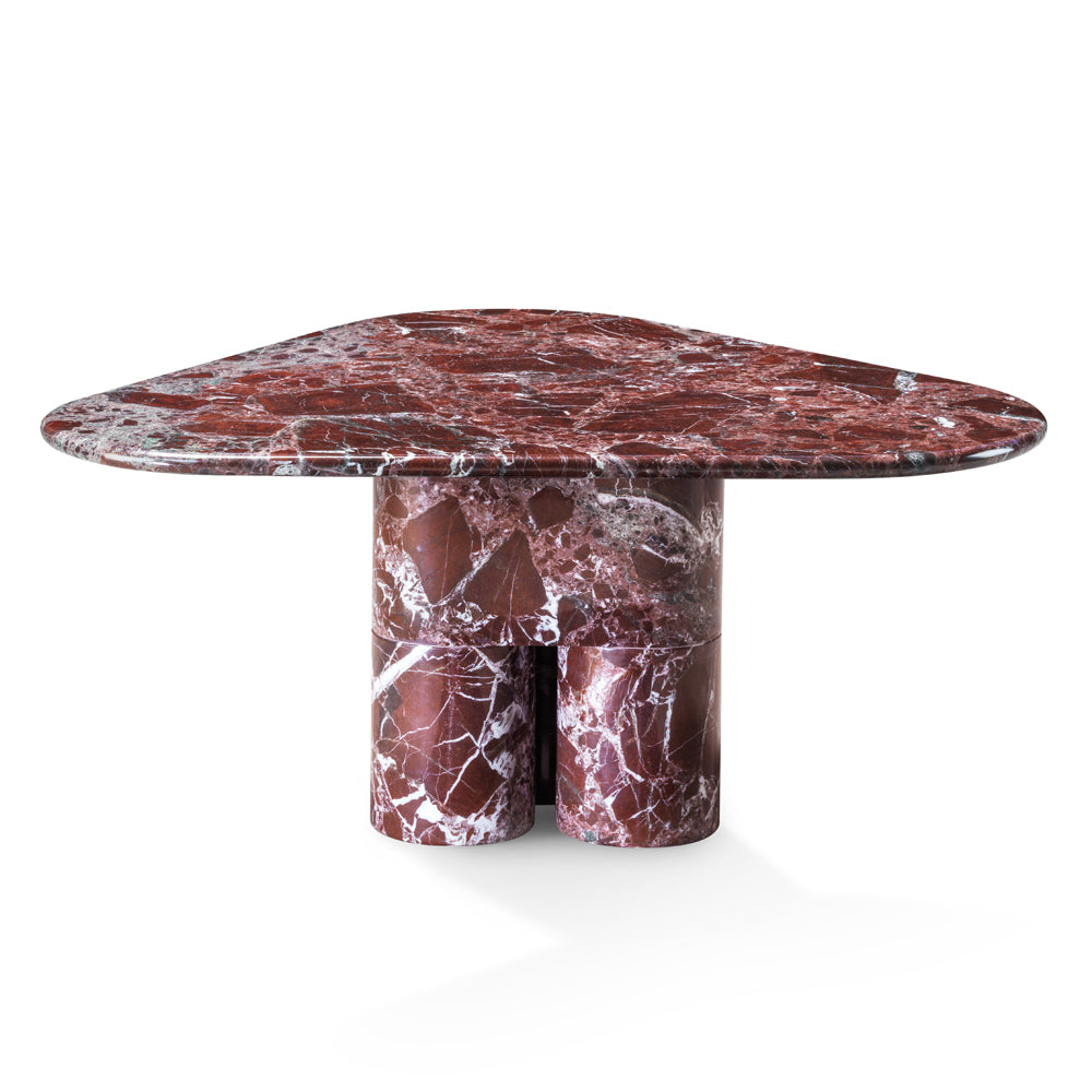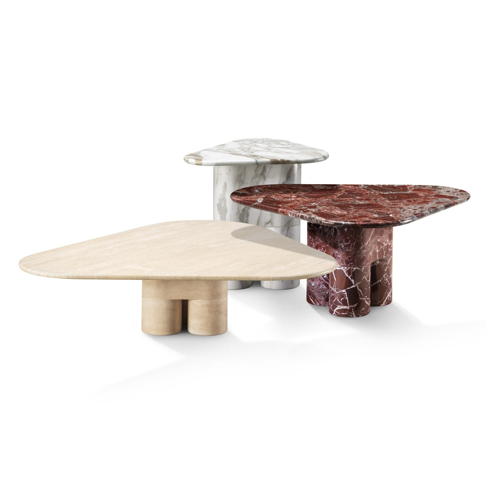 The Tria Coffee Tables are part of a collection of dining and occasional tables, completely crafted in marble. Their tops have a peculiar irregular shape, resting on a singular, crafted marble base. Tria is available in Portuguese pink marble as a standard, but it can be crafted in a wide range of marble finishes.