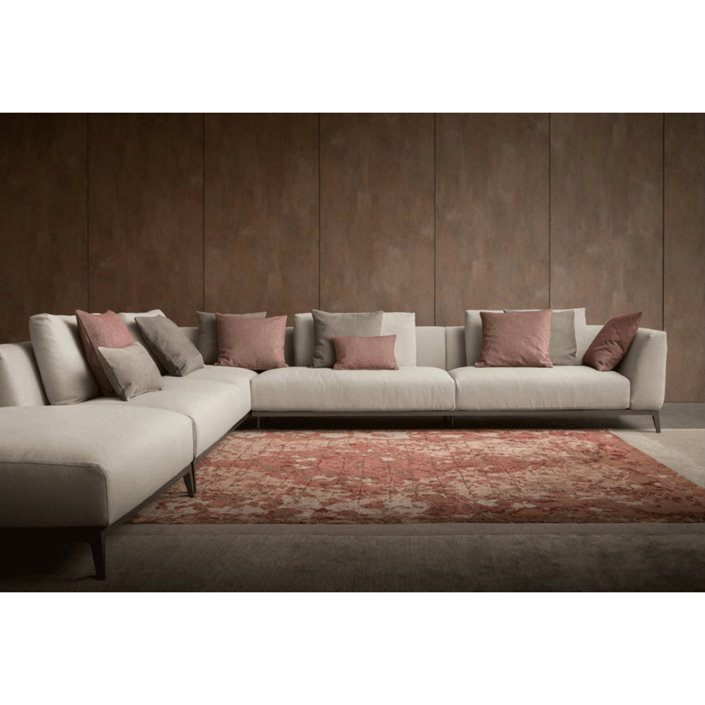 The starting point of the Memories Rug is the precious art of carpet weaving, centred in particular on the ancient Oriental techniques. To these, the futuristic design approach is applied, making use of very personal colours, made of light variations which vibrate between the sheen of silk and the “dusty” patina of wool. The collection, which is enriched every year with new colours, is available in its basic version: linen, wool, silk, and natural fibres; cashmere can be added at customers' request.