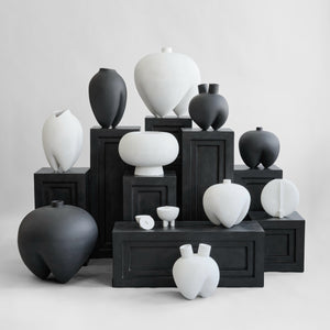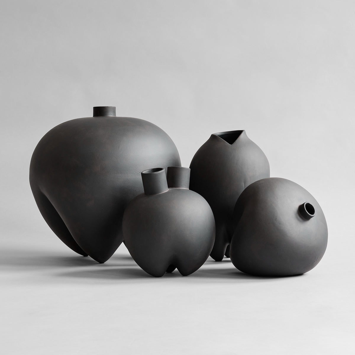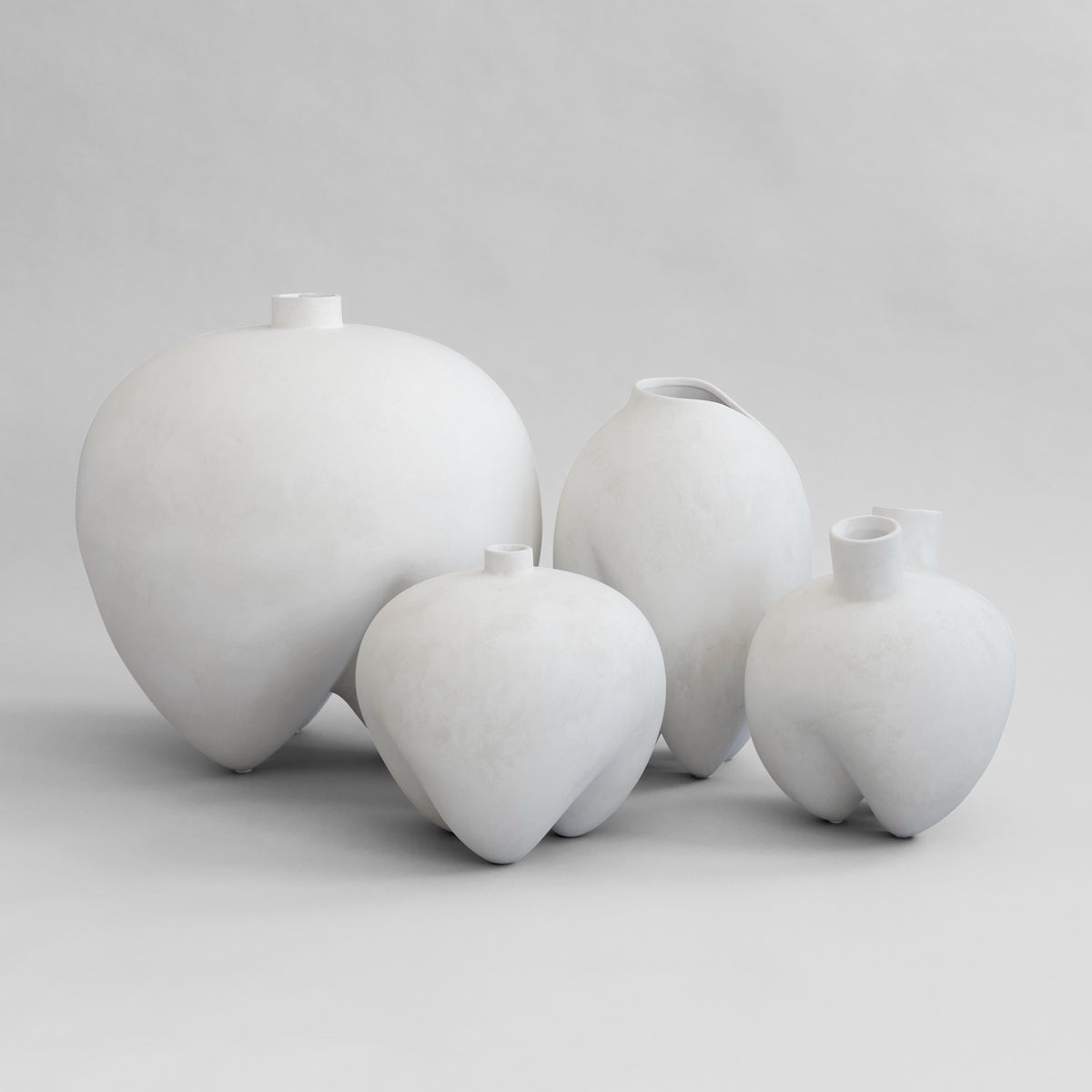 Sumo celebrates the human body. As a reference to the Japanese sport Sumo, all vases are voluminous in size and shape, resting on top of narrow pointing legs. All vases have different openings from the traditional narrow vase openings to double openings and deep carved openings. The Sumo collection looks at the contrast between familiar vase shapes and the addition of more artistic, abstract ideas and details, questioning our individual perceptions of the shape of a vase.