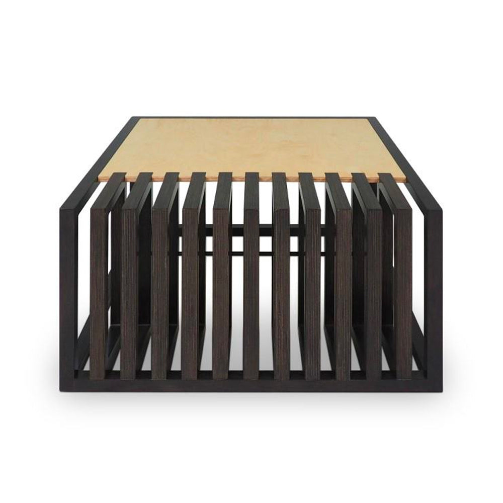 The Fika Coffee Table is a distinctive and versatile occasional table. The design of the table is inspired by the Swedish concept of "fika", a break in the day for a coffee and something sweet, expressly for the purpose of setting aside a moment for quality time. The Fika Coffee Table combines clean lines and contrasting colours with a high degree of functionality: the rhythmic dark profiles can hold books or magazines whereas the light wood base provides a solid platform for placing your coffee or tea. The top and frame of the table are made of birch plywood available in different finish combinations.