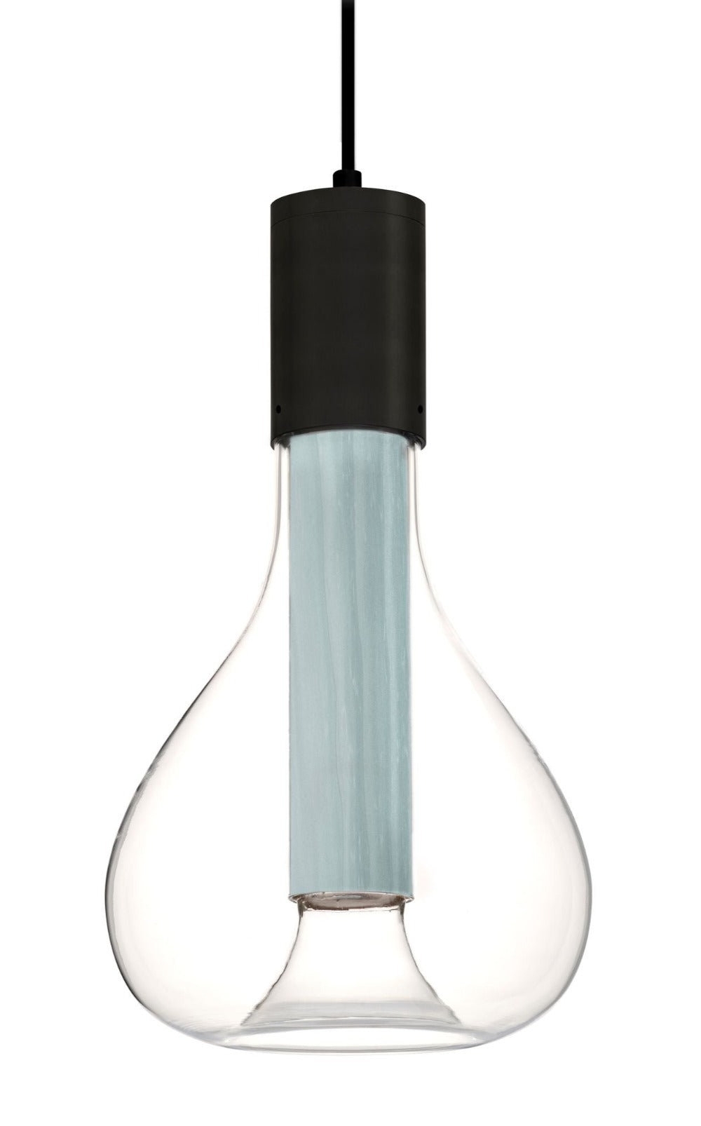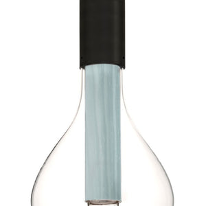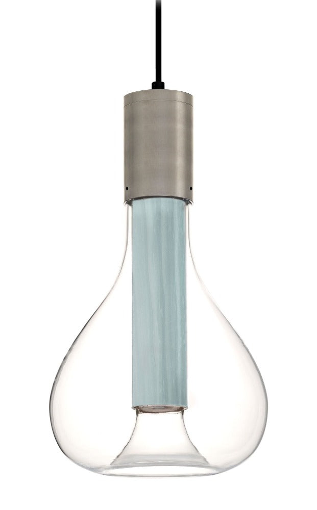 The Eris Suspension Light has an abstract and ethereal beauty, similar to the planet of the same name. Eris is made up of several components: an original borosilicate glass orb, hand-blown by master glass-blower Eduardo Garuti, a wood veneer tube (which contains the LED light source), and a metallic base.