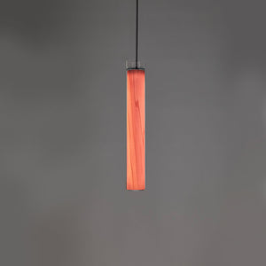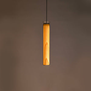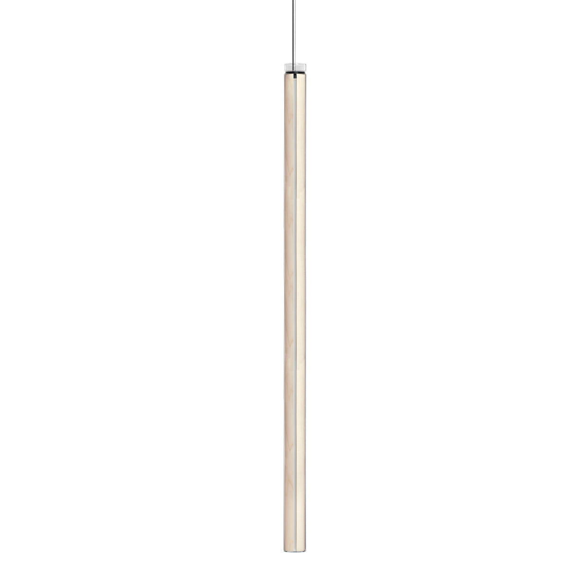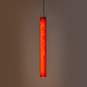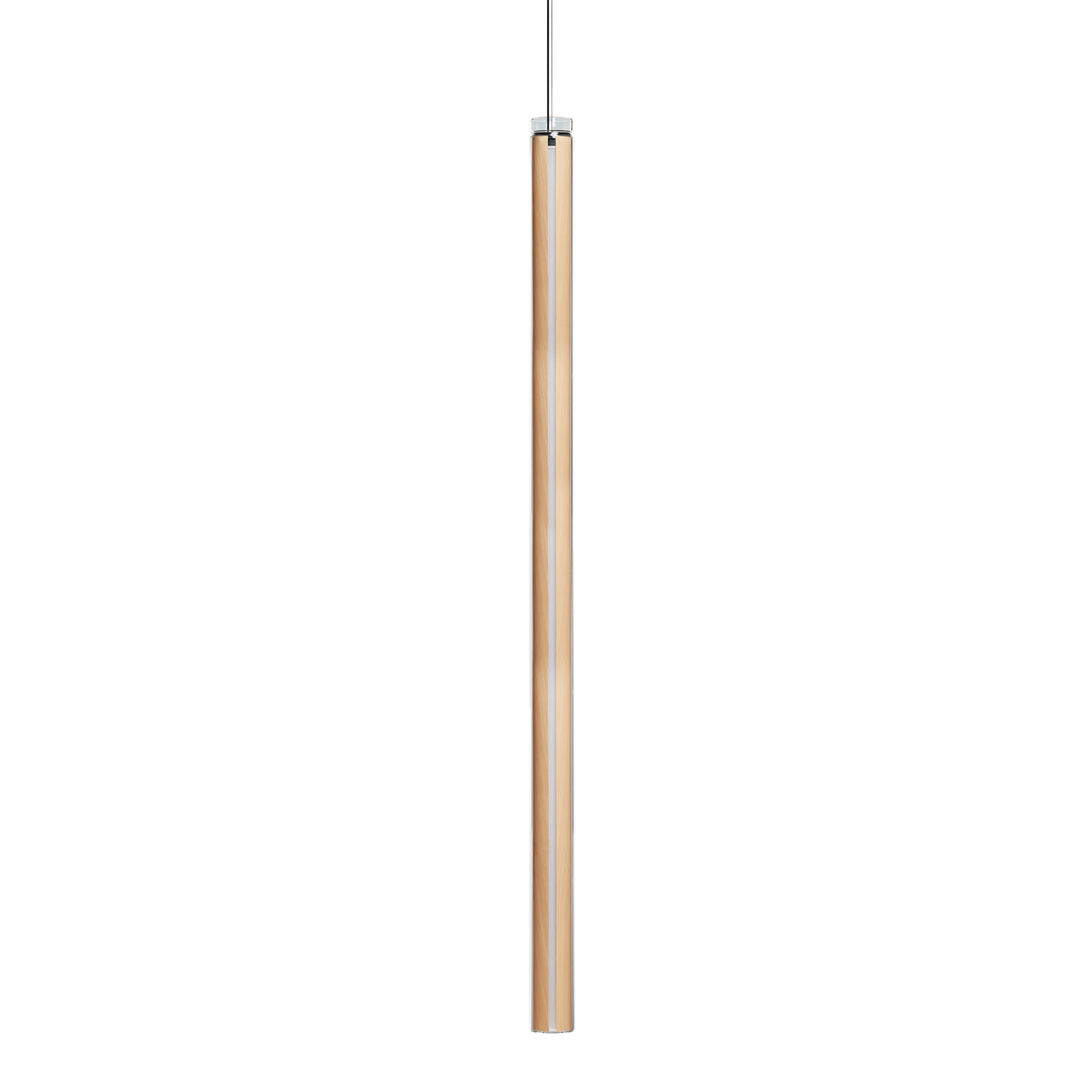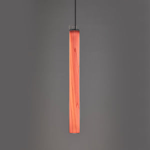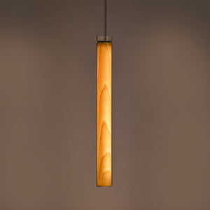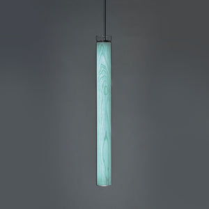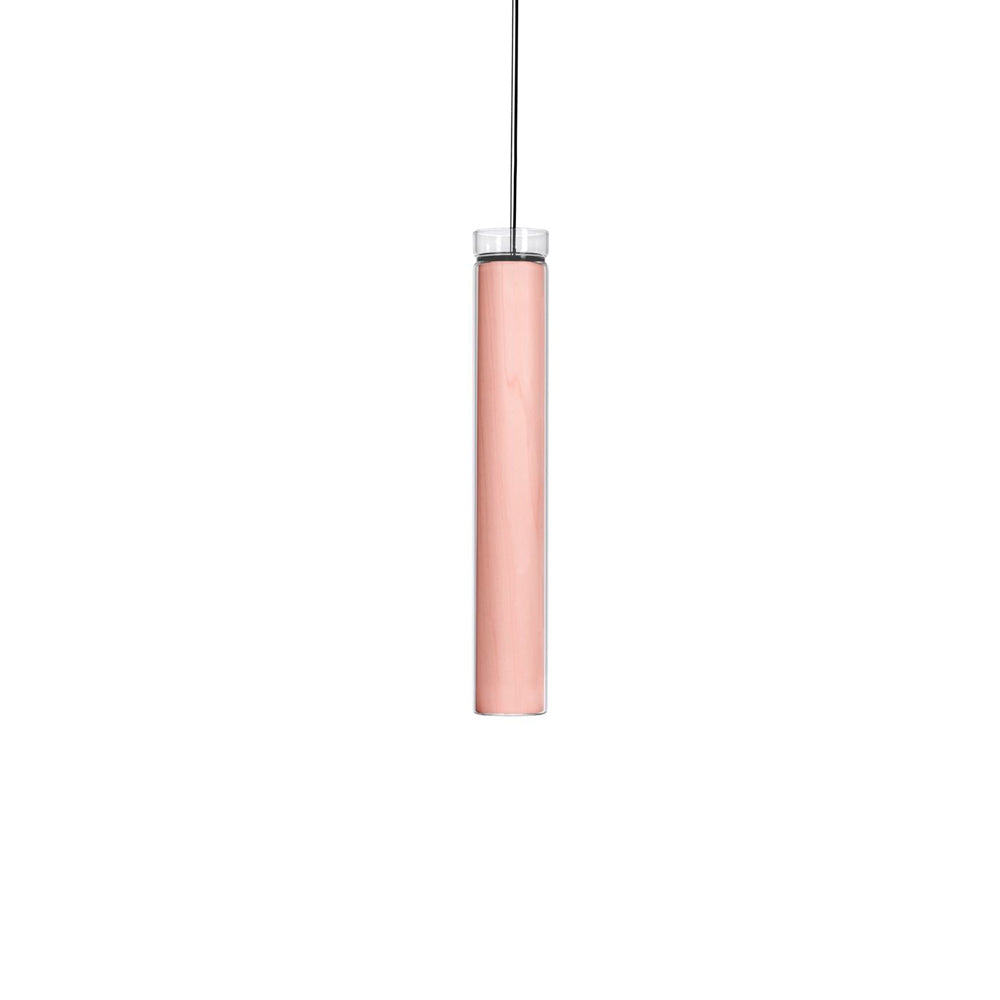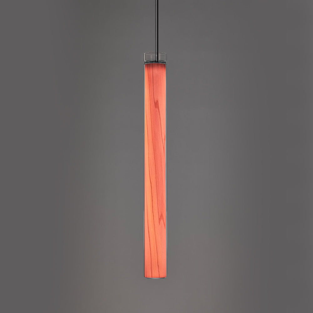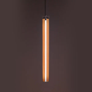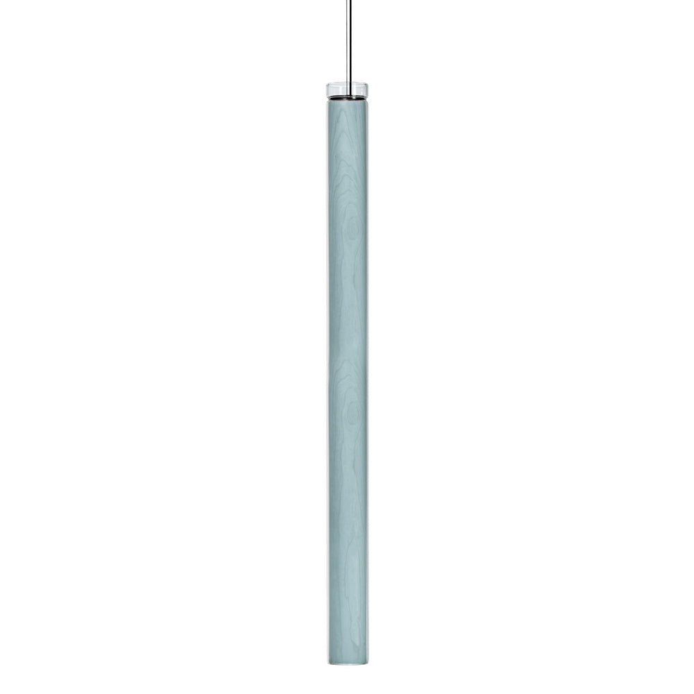 The Estela Suspension Light - Vertical is a captivating capsule of light, composed of a clean, clear, single piece of borosilicate glass (hand-blown by the accomplished artisan Eduard Garuti) enveloping a cylinder-like wood veneer diffuser. The wood veneer houses a dimmable LED light source and a straight opening on one side emits sideward light that is softened by the glass. Estela can also be used together with the Dune suspension light to create alternating design solutions.