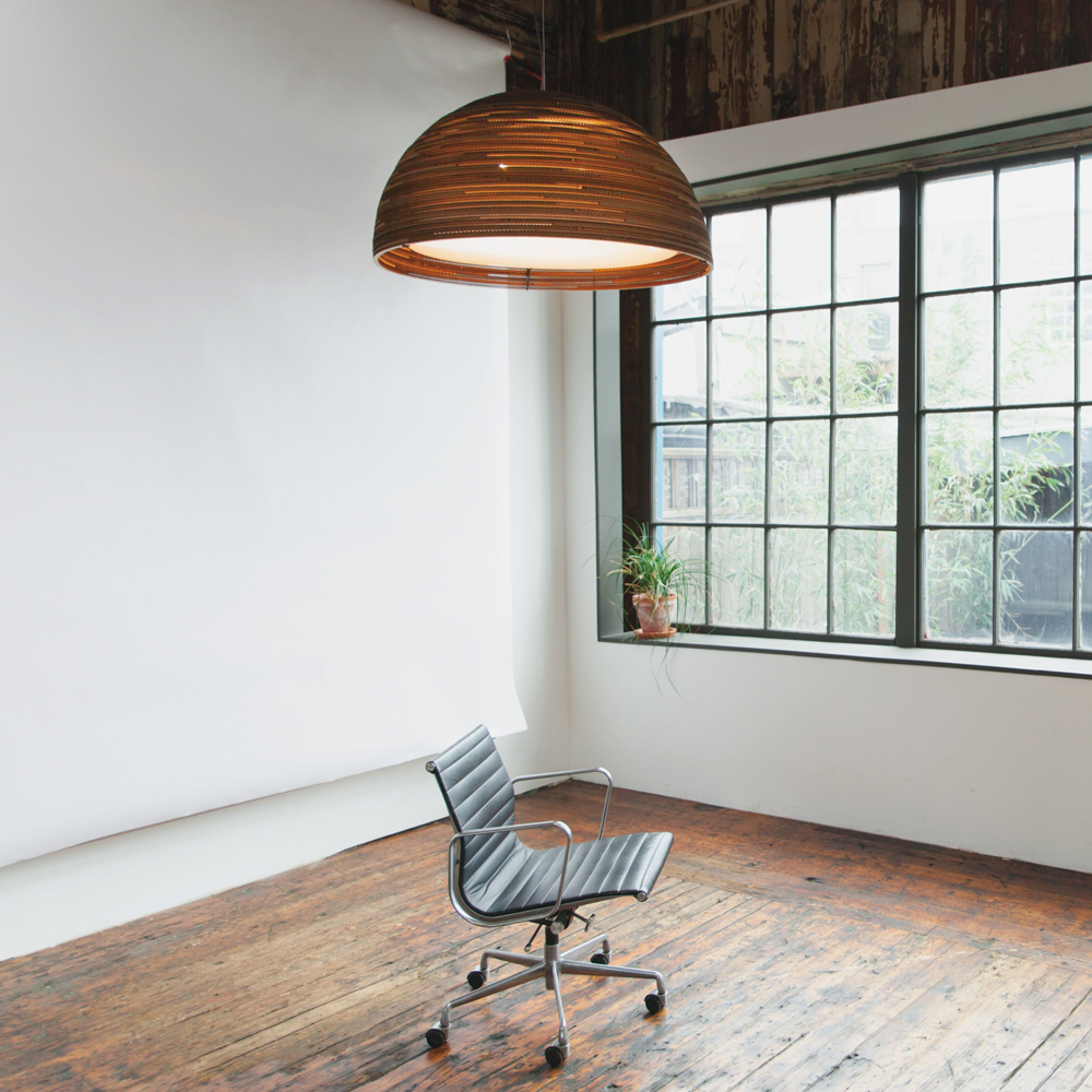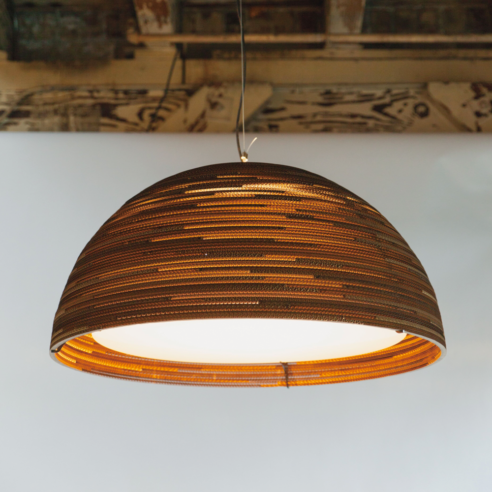 The Scraplight Dome Suspension Light is a versatile and stylish lamp that provides warm, intimate and functional lighting for any occasion or type of space. At night, the corrugation in the shades creates beautiful patterns of light and shadow, transforming the surfaces of a room.