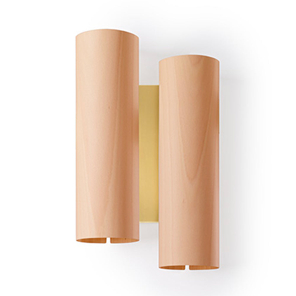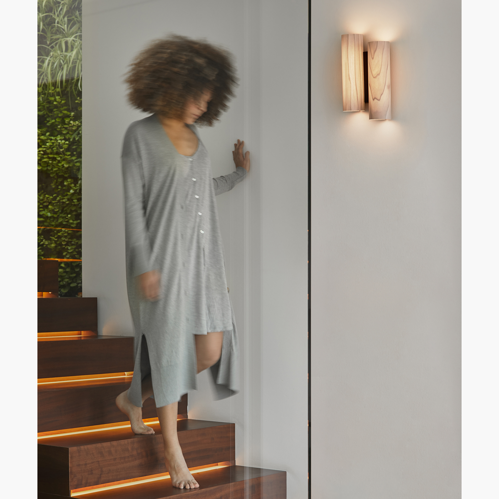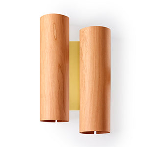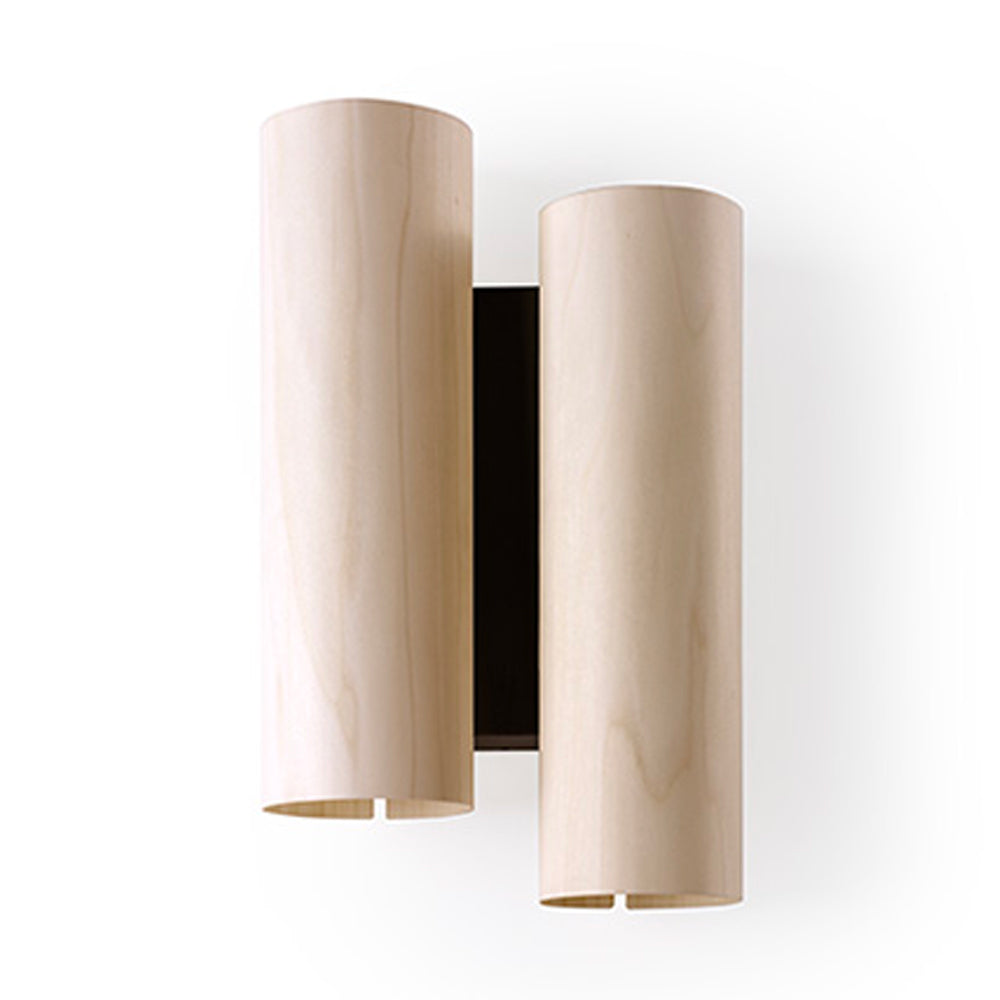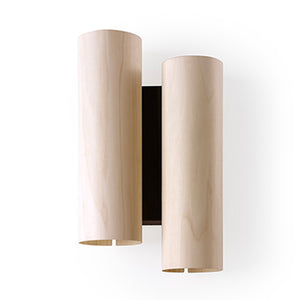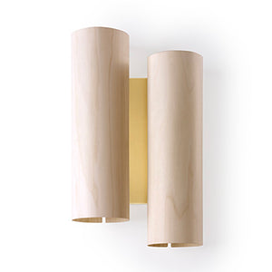 Black Note Duplet Wall is a wall light featuring a vertical metal frame with perpendicular wood veneer shades. The arrangement of the shades is inspired by the black keys of the piano. The Black Note's metallic frame, finished in black, ivory, nickel or gold tones, works harmoniously with its luminous, warm wood veneer shades.