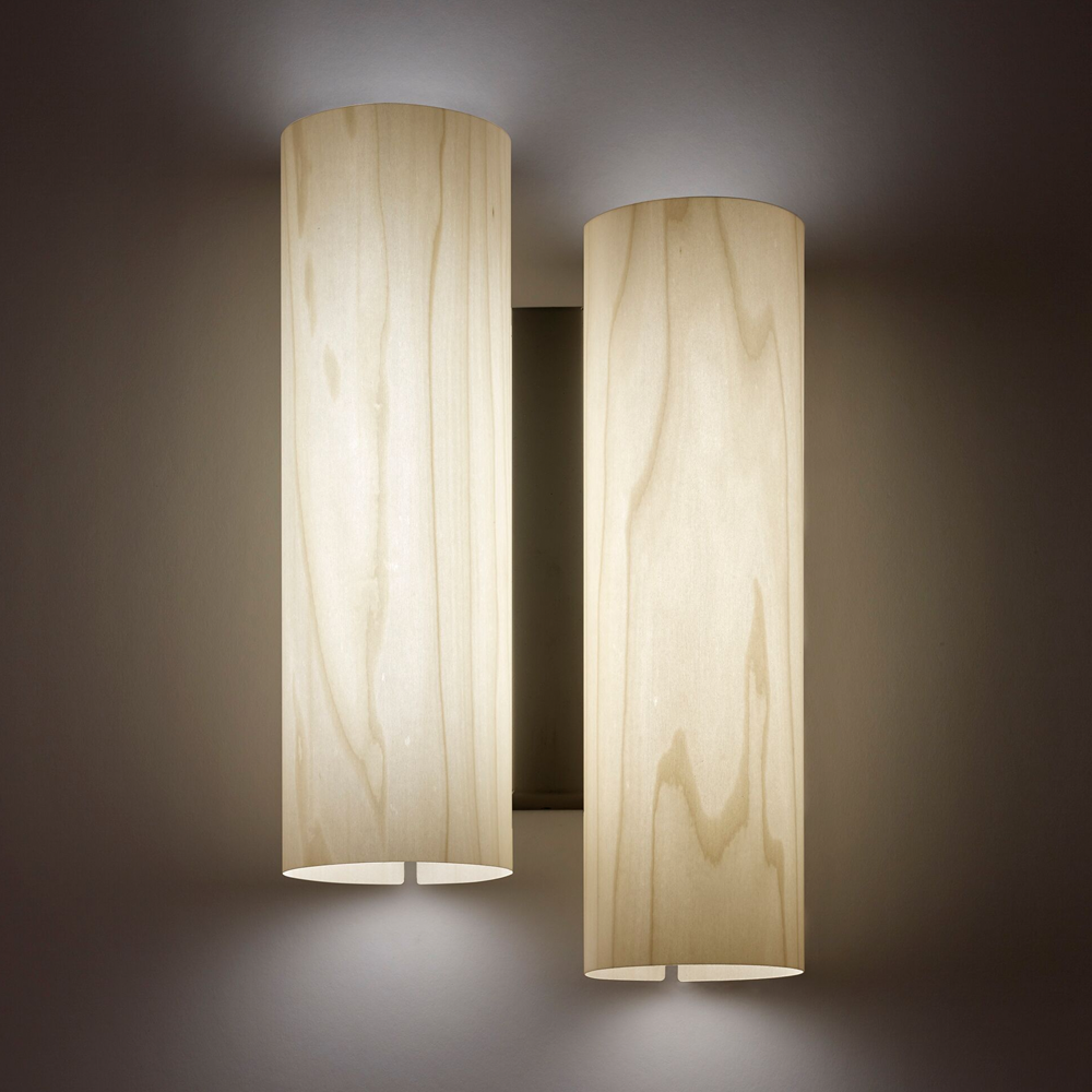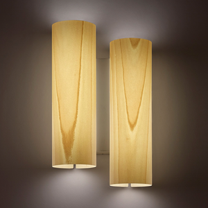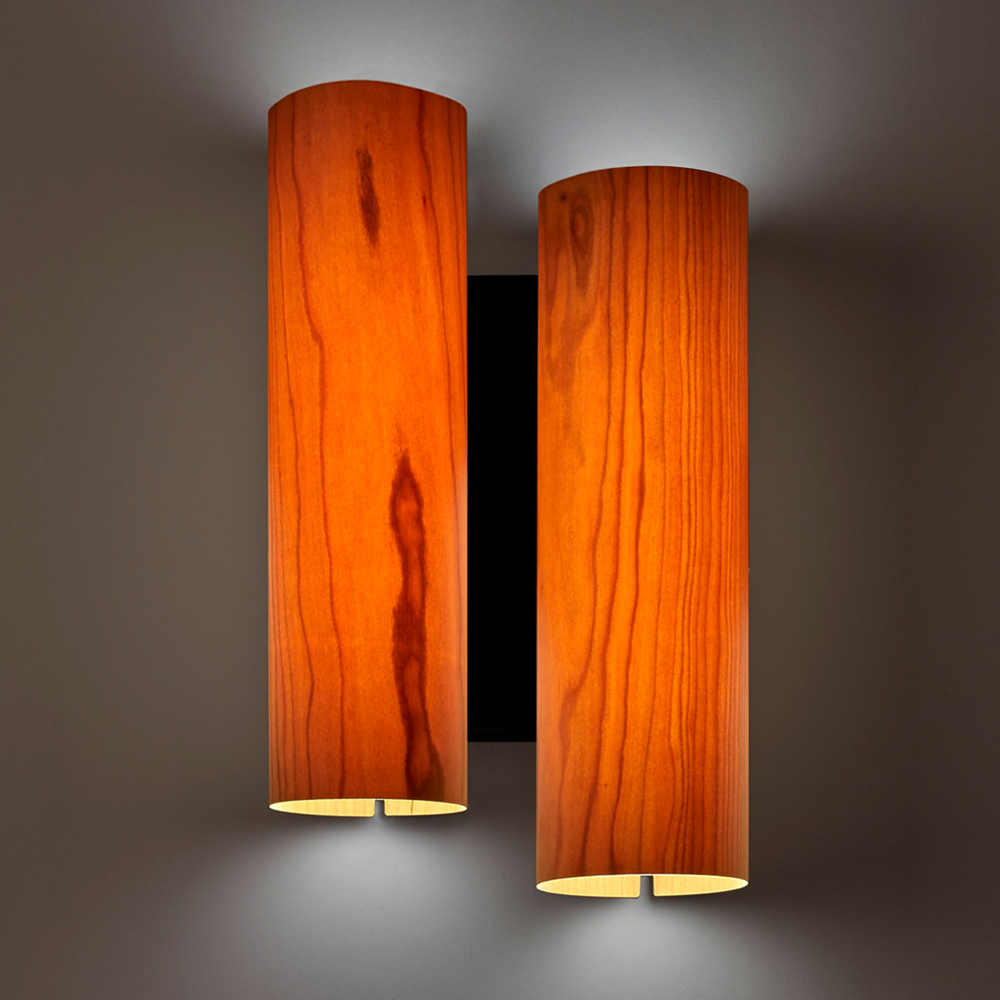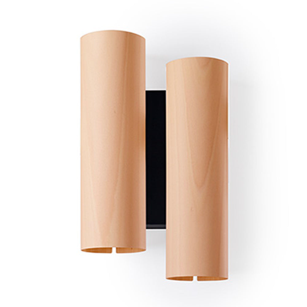 Black Note Duplet Wall is a wall light featuring a vertical metal frame with perpendicular wood veneer shades. The arrangement of the shades is inspired by the black keys of the piano. The Black Note's metallic frame, finished in black, ivory, nickel or gold tones, works harmoniously with its luminous, warm wood veneer shades.