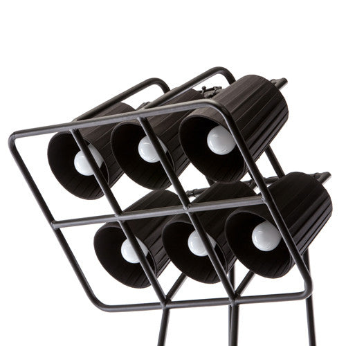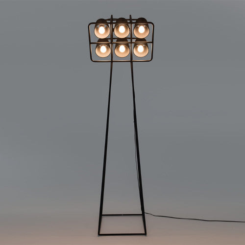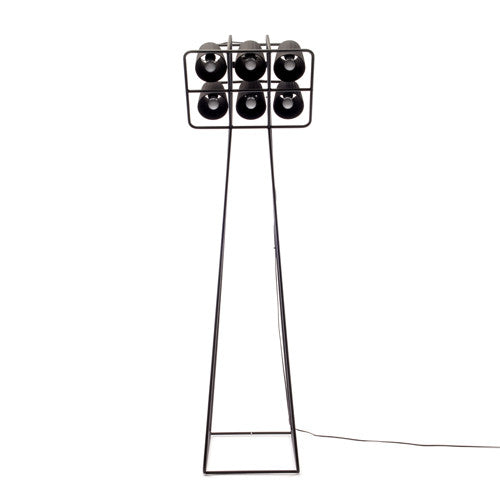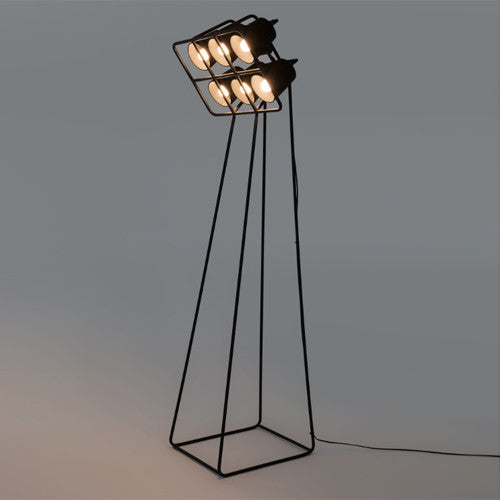 The Multilamp Floor Metal Lamp has a striking industrial style design which will add drama to any room by truly "setting the scene". The Multilamp Floor Metal Lamp is dimmable and available only in black.
