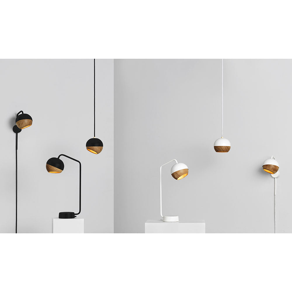 The Ray Table Lamp is an elegant and innovative wall light with a strong aesthetic reference to Nordic minimalism. The lamp features a spherical steel shell with a wooden globe shade mounted inside with magnets, which enables users to position the beam of light in any direction required.