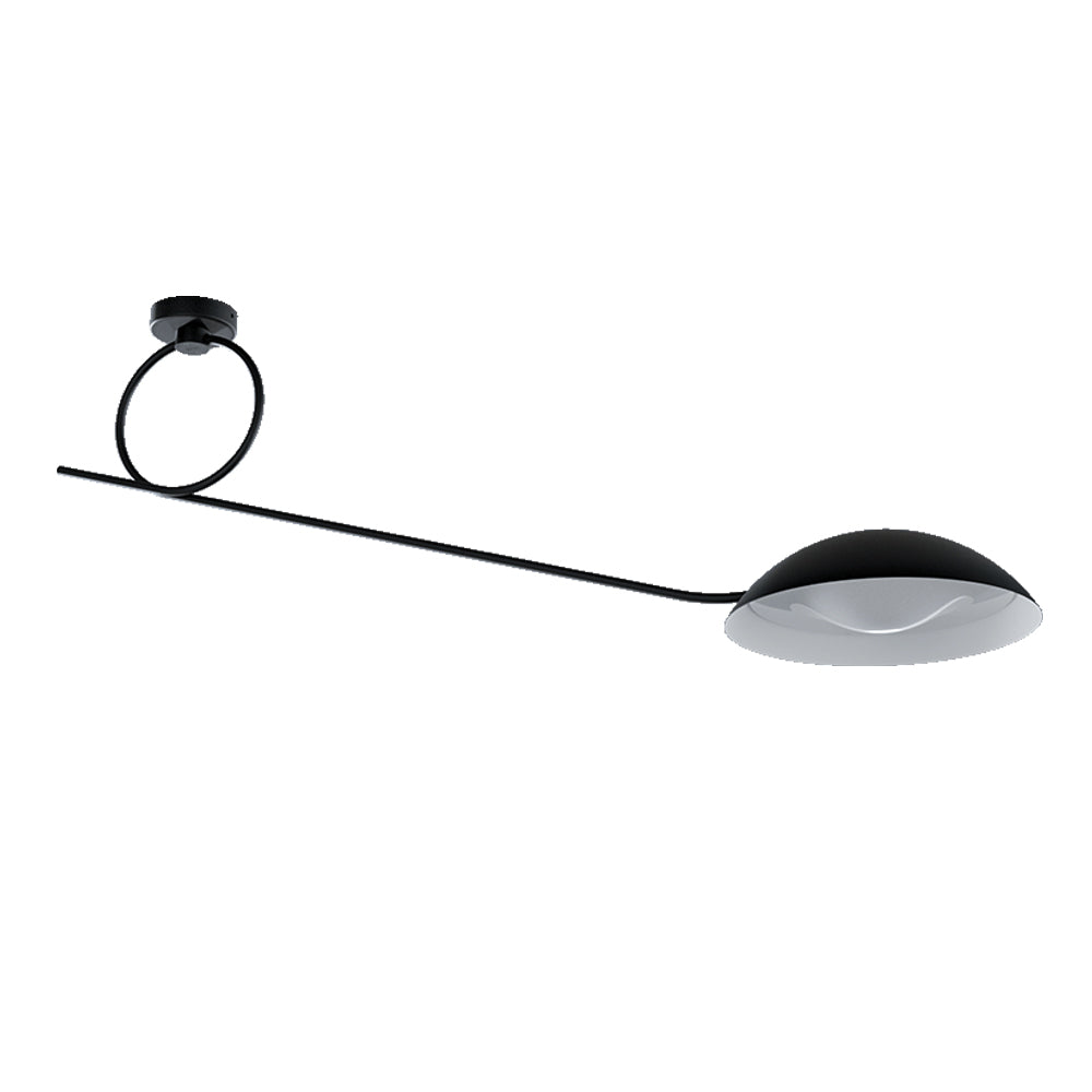 Inspired by a safety pin, the design of the Spring ceiling light features a metal loop at the ceiling bracket, reminiscent of a coiled spring. The lampshade can rotate 365 degrees, which enables the lamp to be used as an uplight or a downlight.