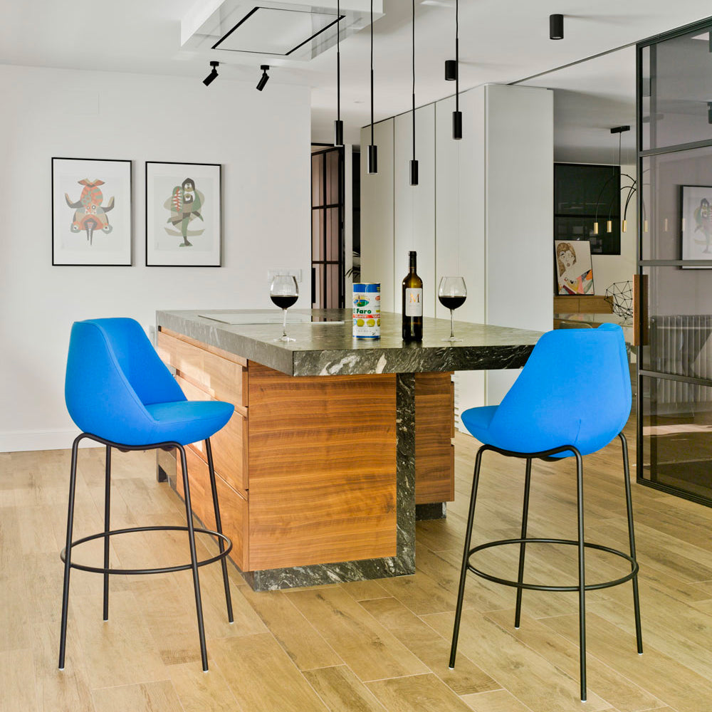 The design of the Magnum Stool is a homage to British elegance, inspired by the bespoke tailoring of Mayfair and the cognac glasses cradled by patrons of gentlemen's clubs. These compact and sculptural chairs work well in both commercial and domestic settings, especially as part of contemporary design schemes which call for a dash of discrete luxury.