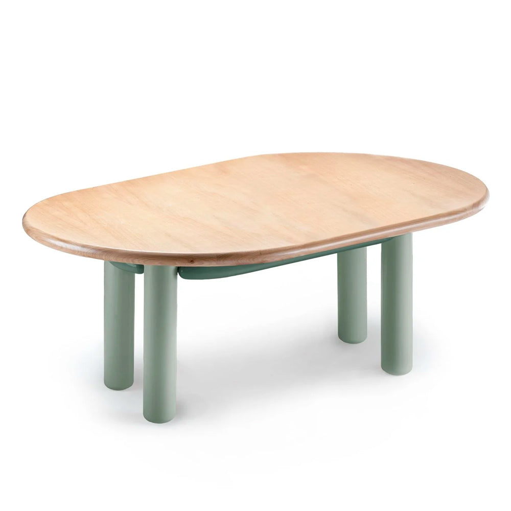 The Kai Dining Table - Rectangular is a steady, functional and colourful table: the rounded legs and structure provide perfect stability. The legs are in wood, the top is available in both wood or marble and the rounded tubular details under the top are in metal, available in multiple colour options.