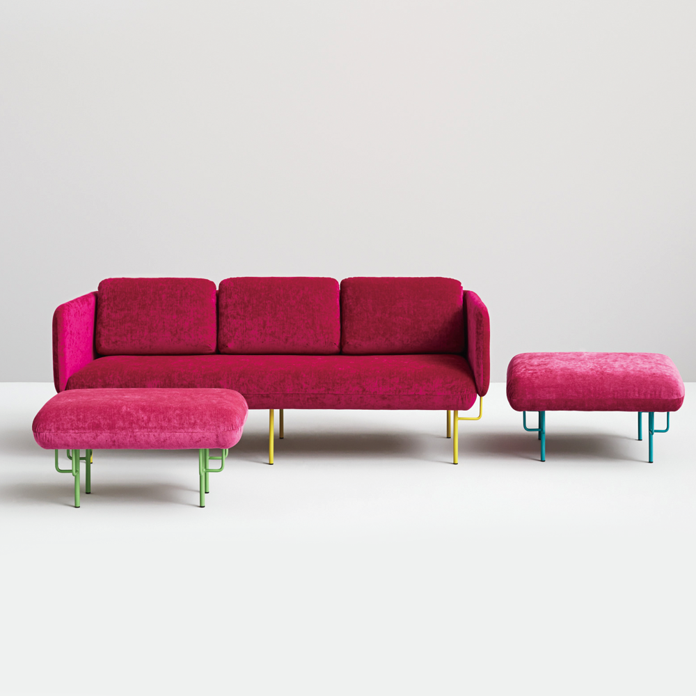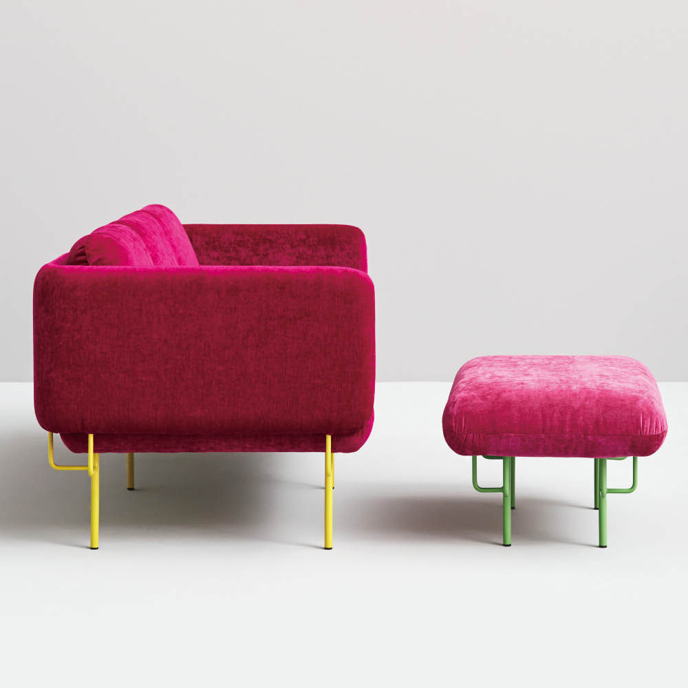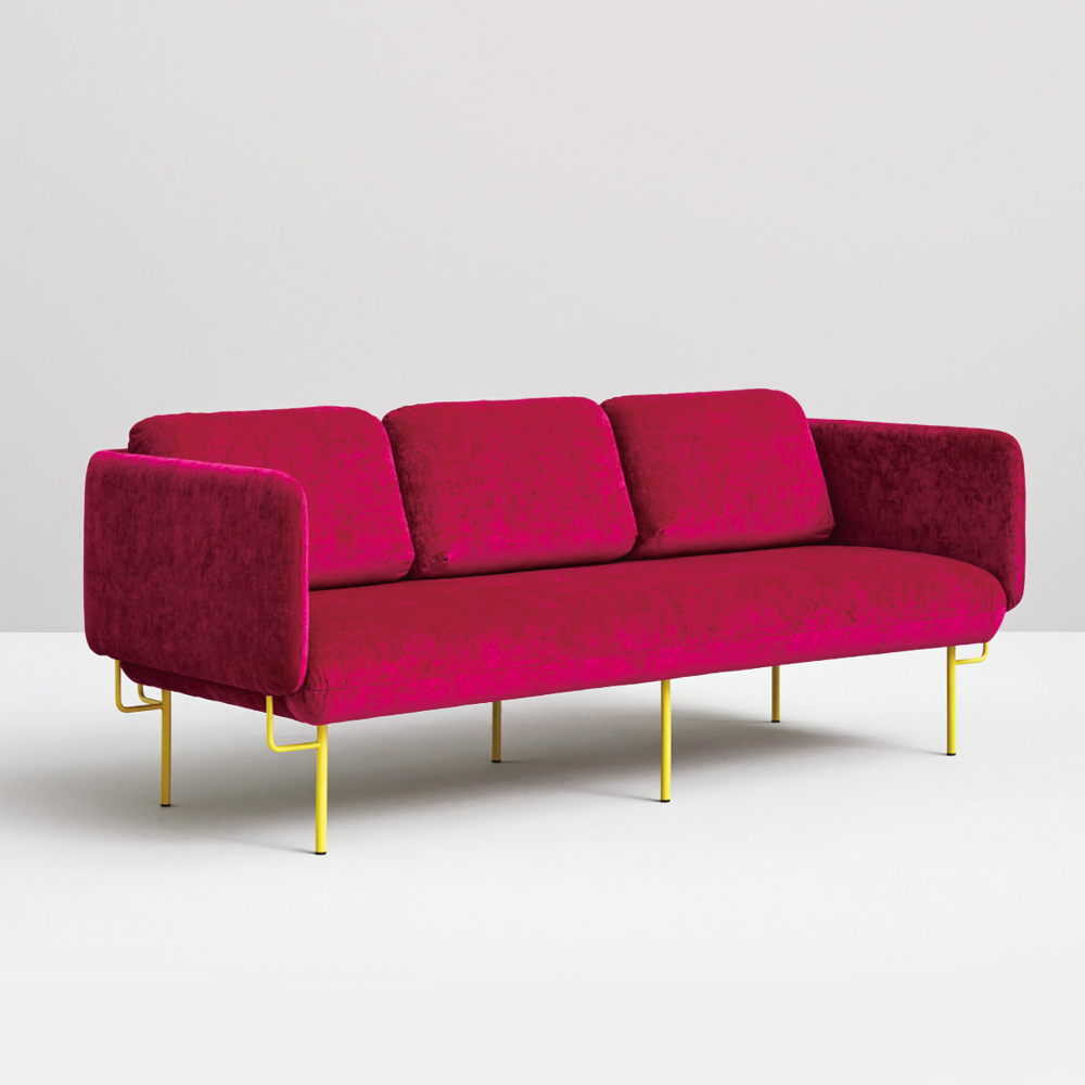 The Alce 3 Seater Sofa is a modern and playful sofa. The seat and back cushions of the sofa are sleek and comfortable, set on top of slender legs which recall deer antlers, after which the sofa is named.
