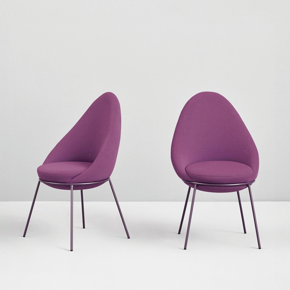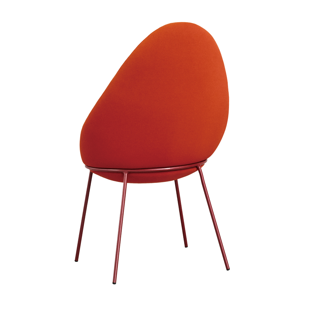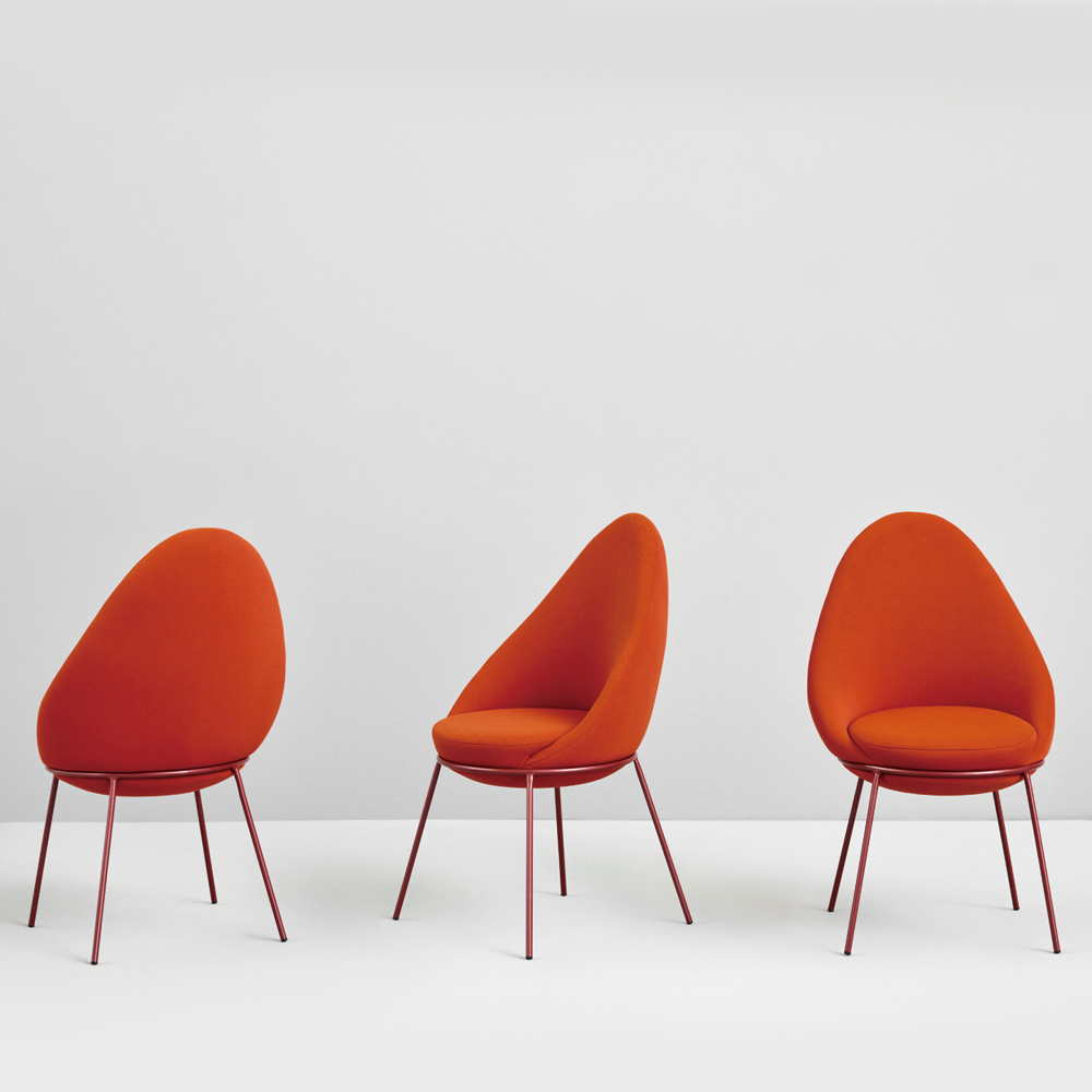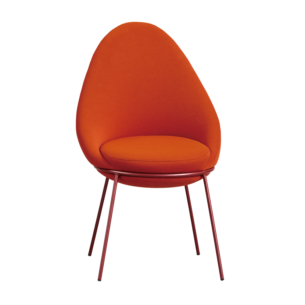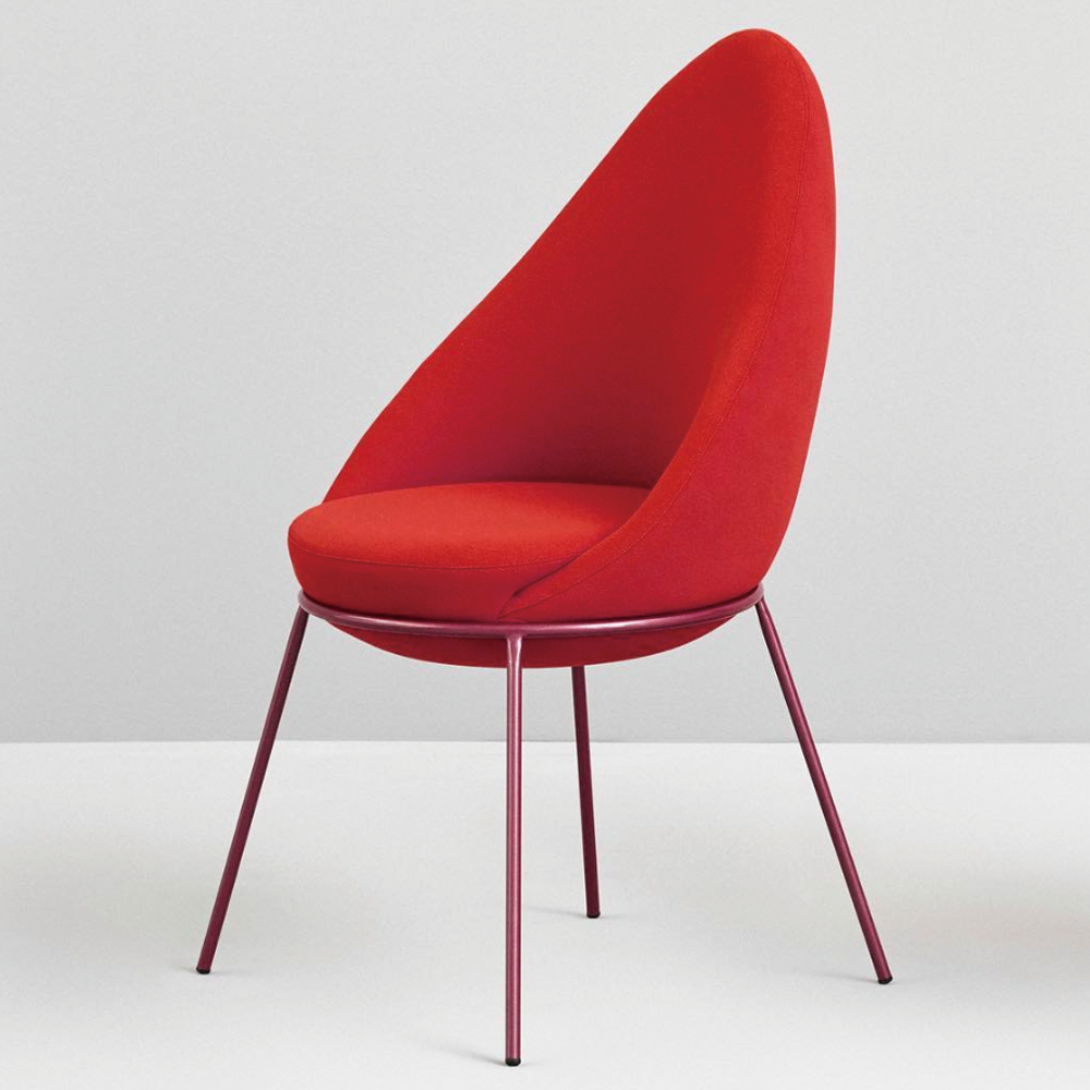 The Nest Chair is a comfortable and versatile chair. The chair features an upholstered block sitting on a tubular metal frame with four legs.