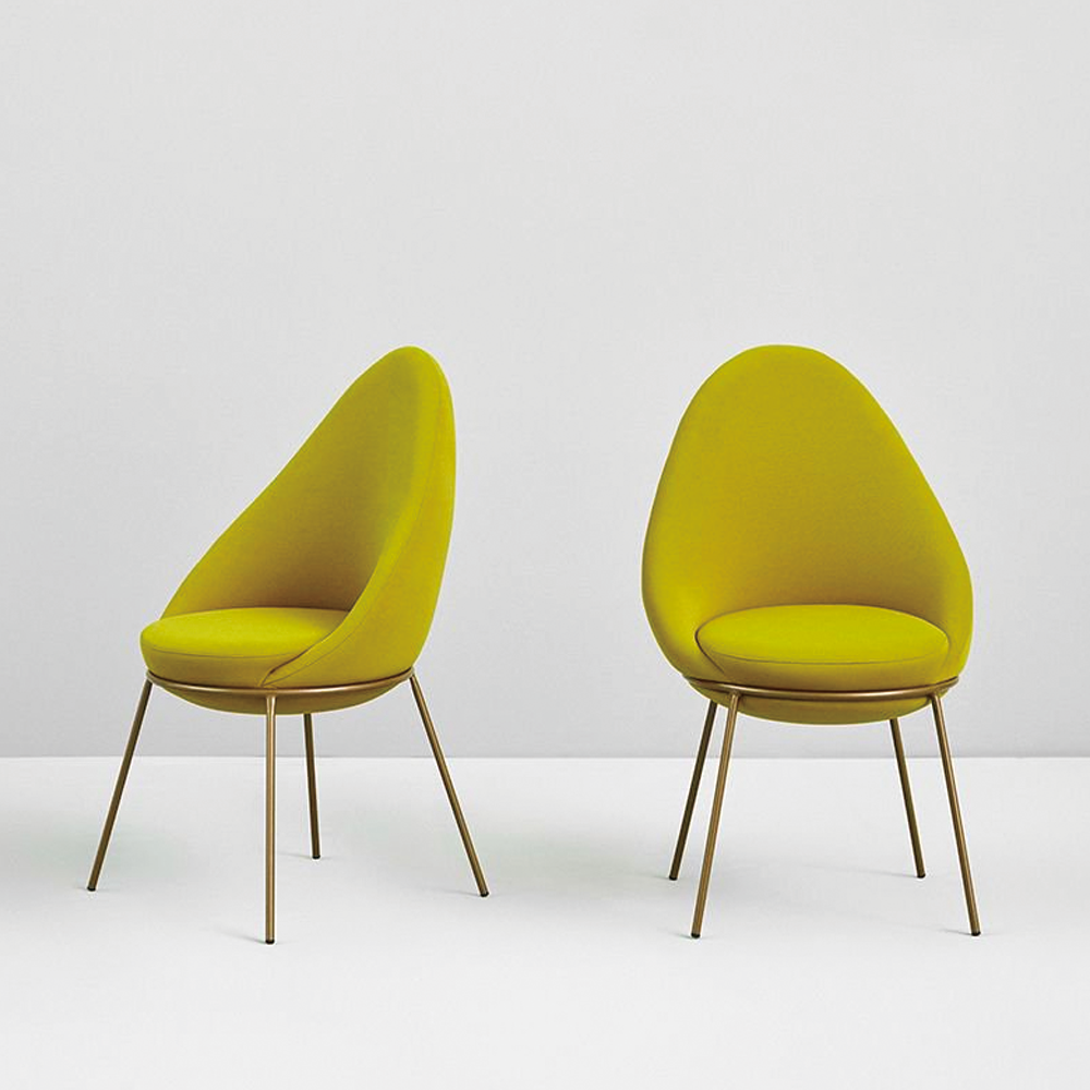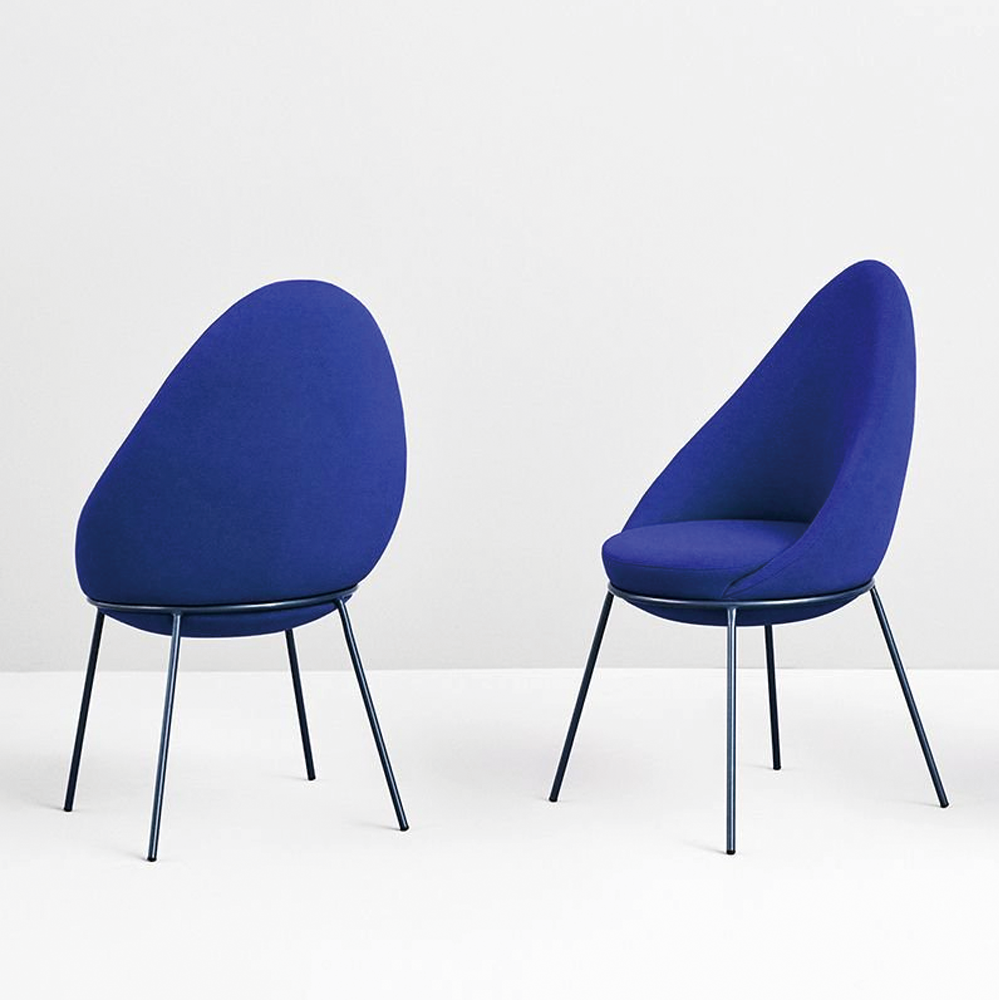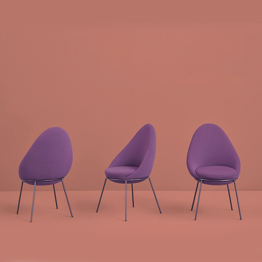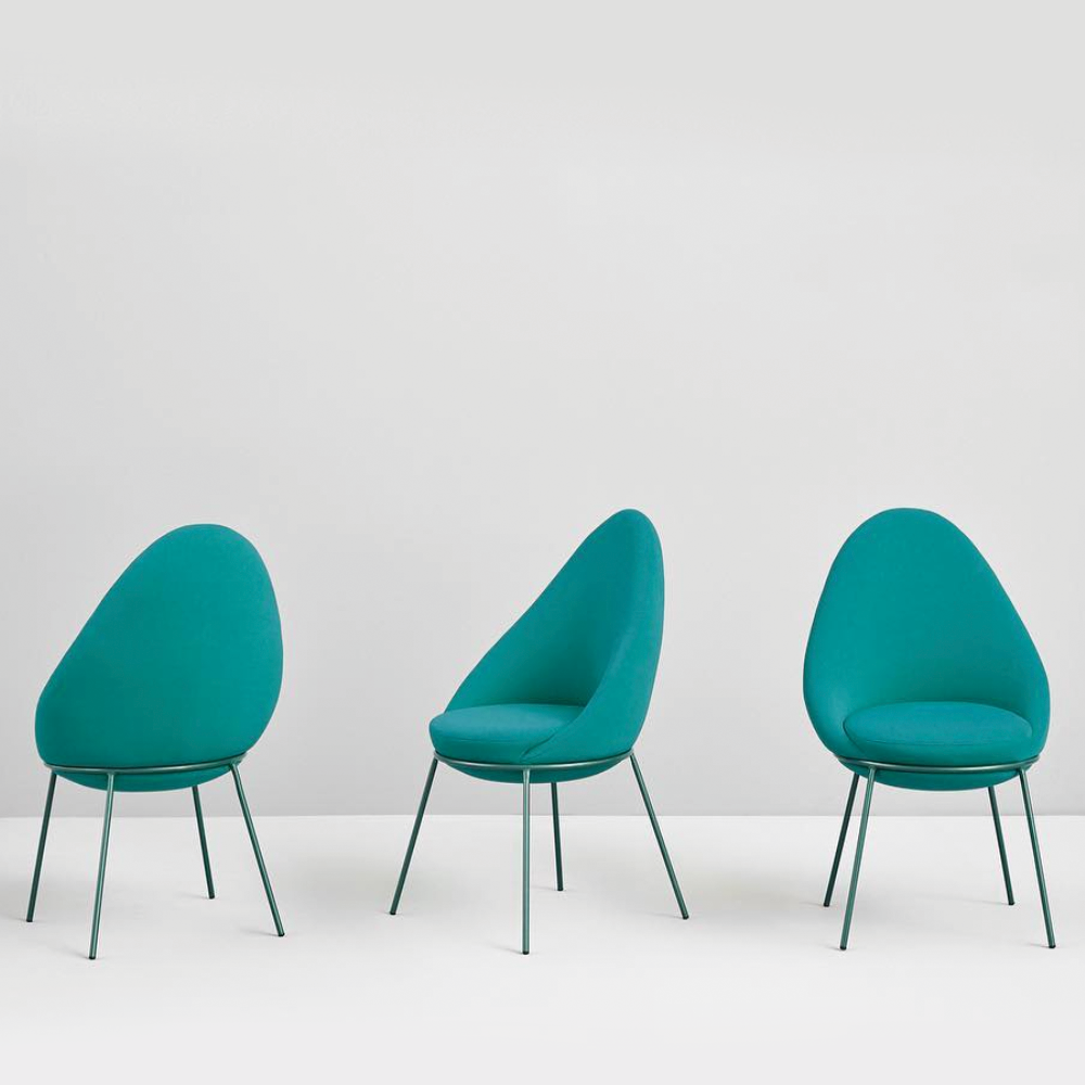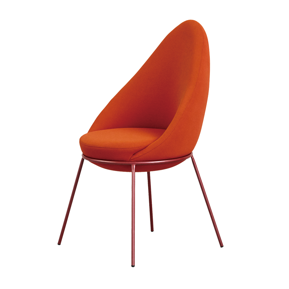 The Nest Chair is a comfortable and versatile chair. The chair features an upholstered block sitting on a tubular metal frame with four legs.
