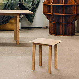 The Nervosa Stool is a sophisticated and versatile low stool: its distinctive design is characterised by its simple and elegant shape and its beautifully hand-crafted solid wood frame and seat.