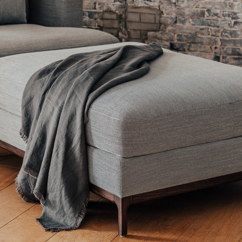 Named after the traditional Chinese concept of a "small nap" at noon, the Qi Ottoman draws inspiration from the Luohan Chuang: a dual-purpose bench used for both sitting and sleeping. Qi blends modern versatility with the minimal style of Jean-Michel Frank. The Qi collection - designed by Neri&Hu - comprises one, two, three-seater sofas and a matching ottoman. All products have a solid wooden frame and are fully upholstered in a wide variety of leather or fabric choices. A small and a large extra cushions are also available: please enquire for more details.