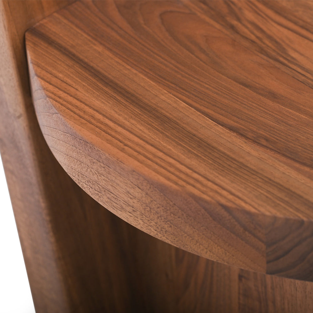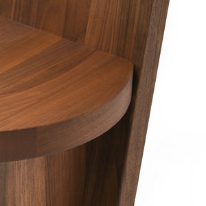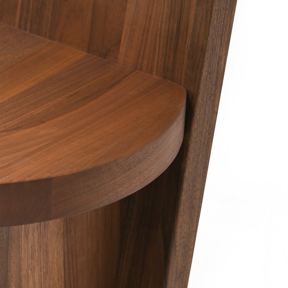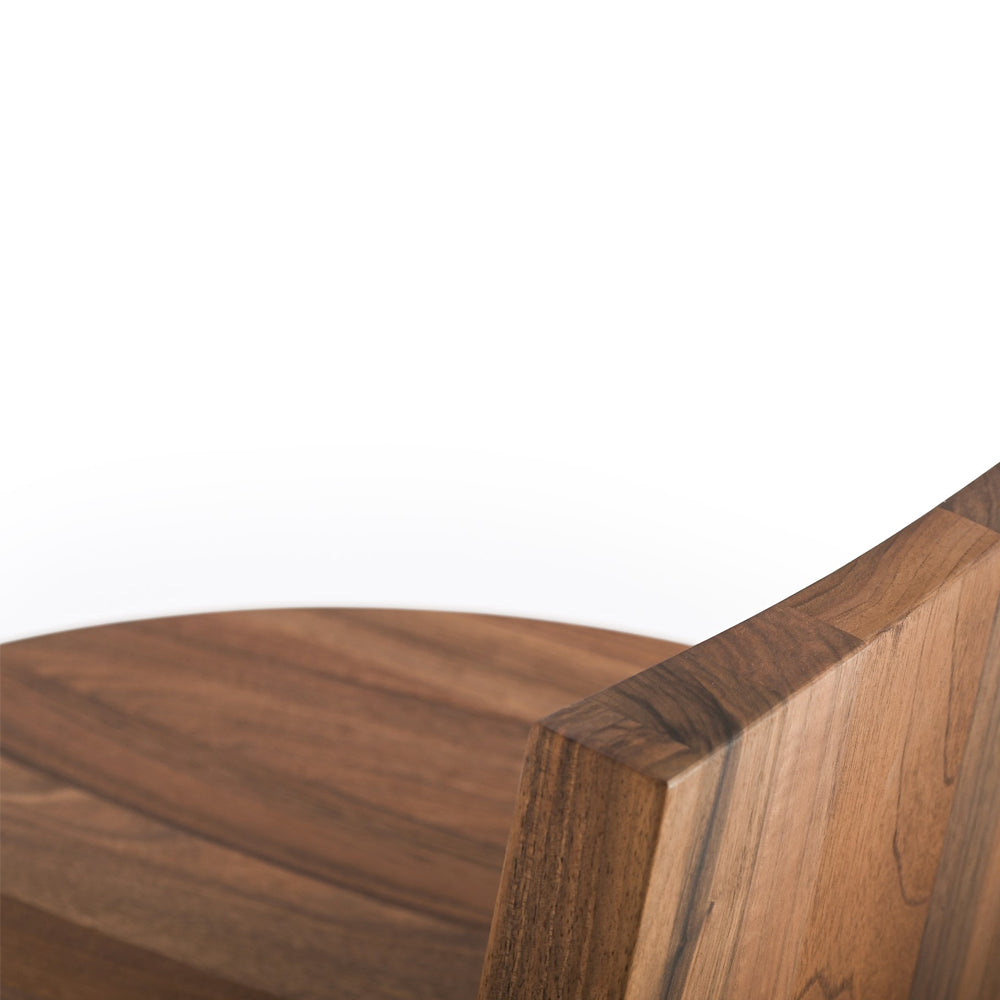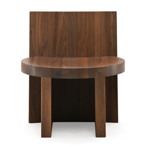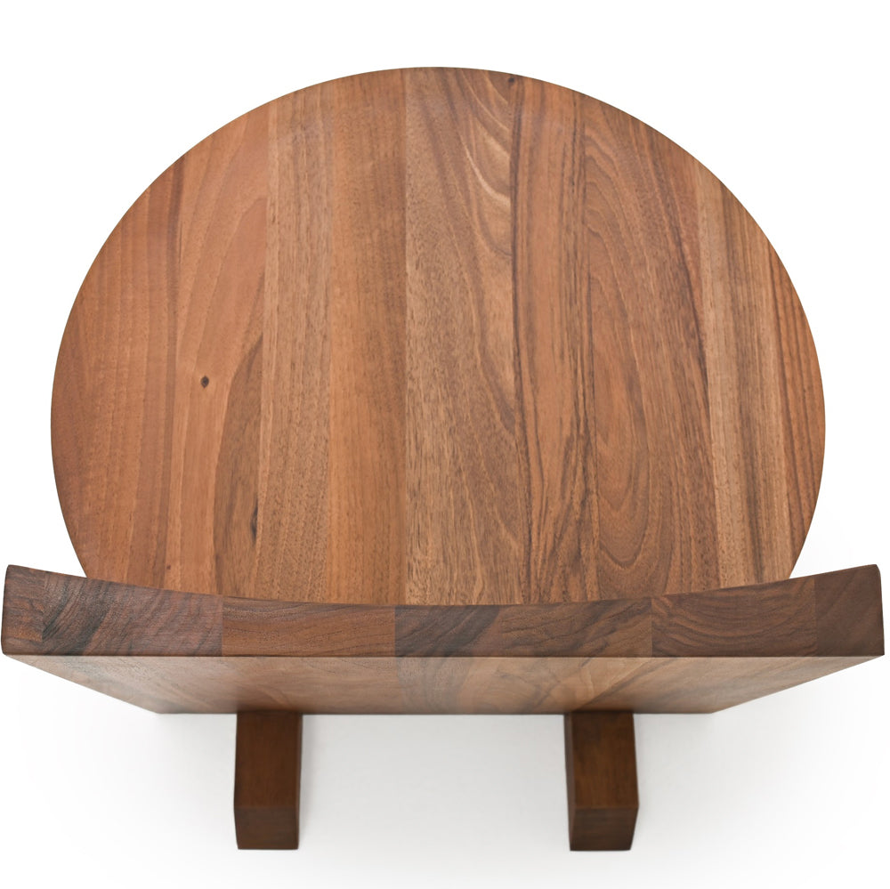 The design of the Rudi Chair emphasises the beauty of the raw material: solid oak and walnut sculpted with simple, clean lines. A familiar object with a minimalist aesthetic based on a few interlocking geometric elements – rectangular backrest and legs and round seat - joined together in meticulous yet primitive harmony. The Rudi Chair is available with either a low back or a high back.