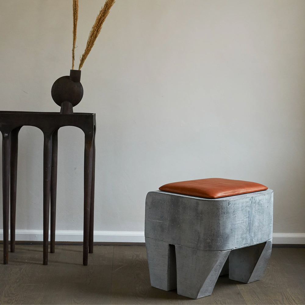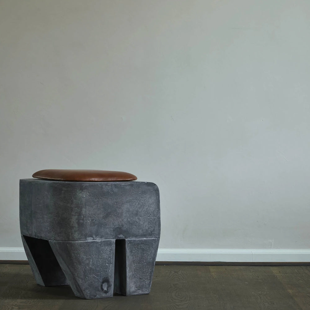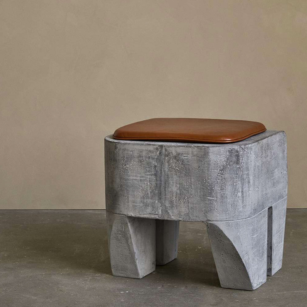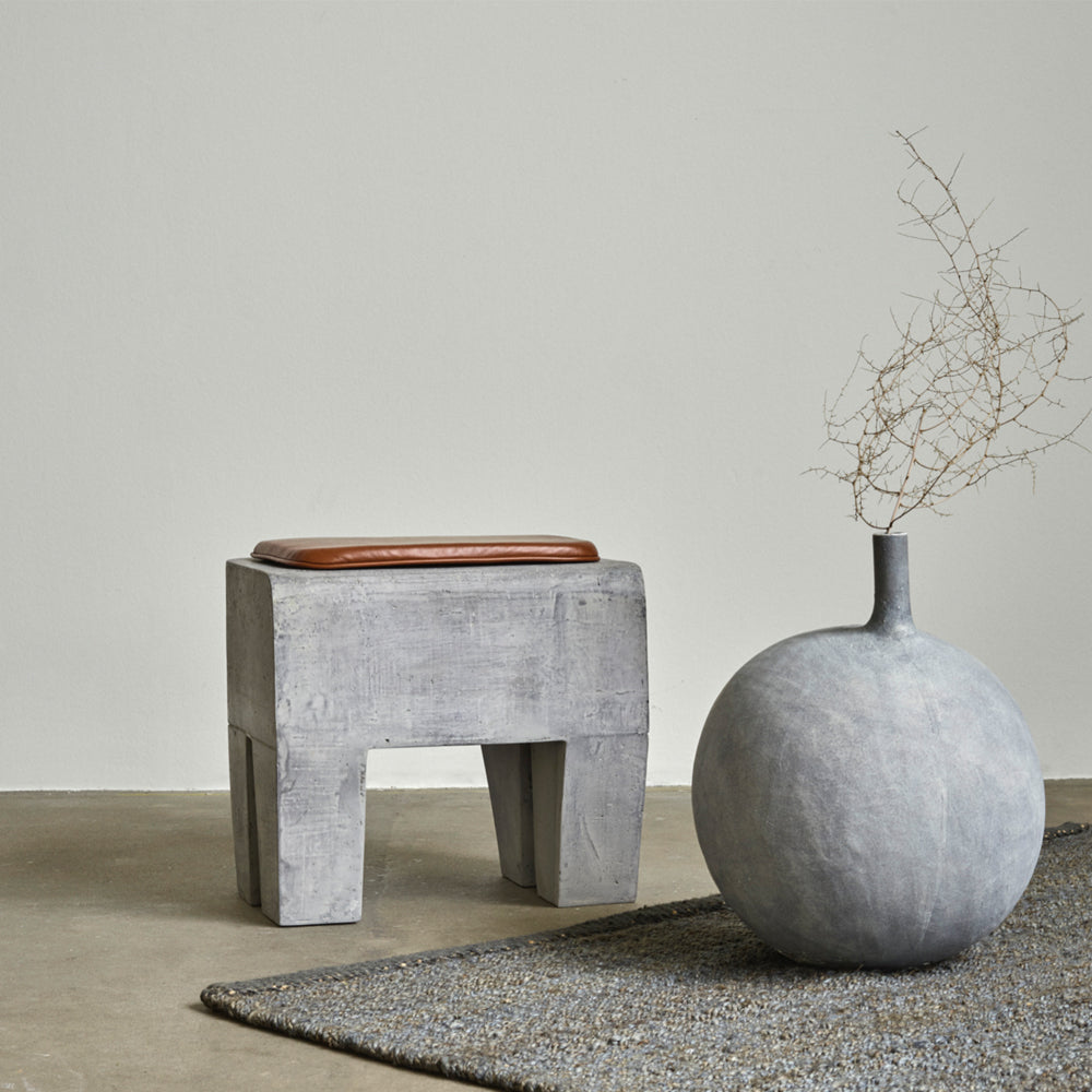 The Sculpt Stool Concrete is inspired by the Brutalism movement of the mid 20th century, its elephantine block-like structure a nod to those highly distinctive concrete buildings. The Sculpt stool is cast in lightweight fibre concrete, which creates a unique surface texture and increases mobility. It is available with or without a cushion.