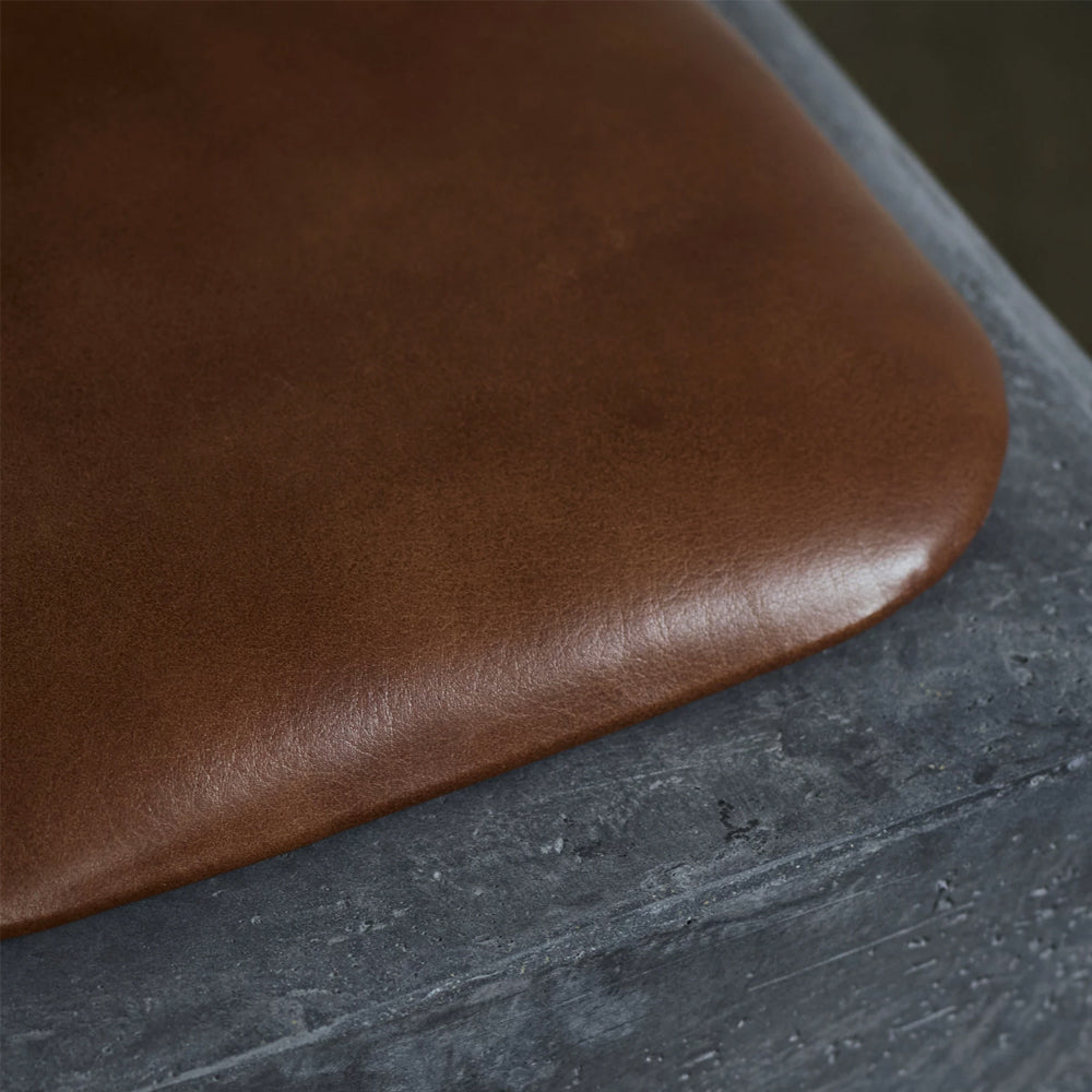 Cushion: upholstered in cognac coloured leather