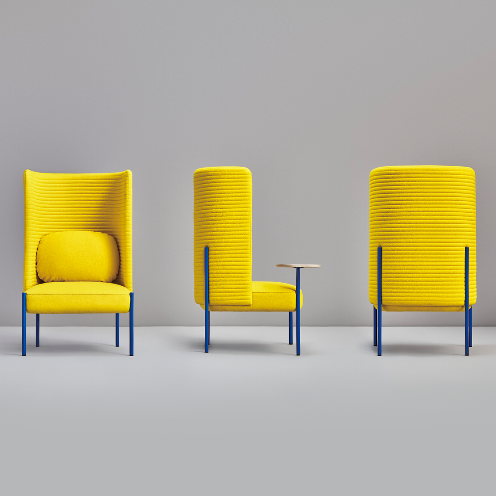 The Ara Armchair was conceived with the aim of merging comfort, communication and privacy. Ara takes its name from a very characteristic South American parrot which is able to talk and communicate. This armchair gives its user the privacy that the new forms of communication very often require: Ara is the ideal armchair to manage our day to day tasks, such as dealing with emails, making conference calls or just enjoying a little privacy and well deserved relaxation time after a long day at work. The armchair is available in 2 versions: with or without a side table. Both versions feature upholstered seat and back / arm rest.