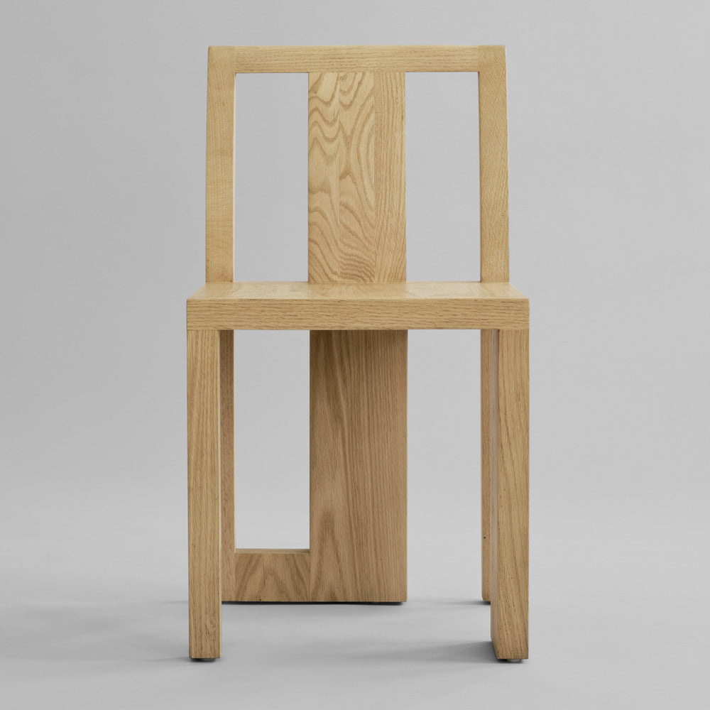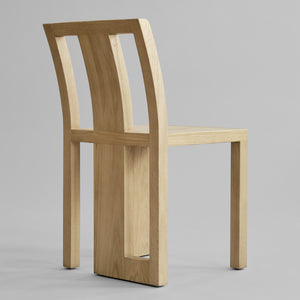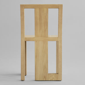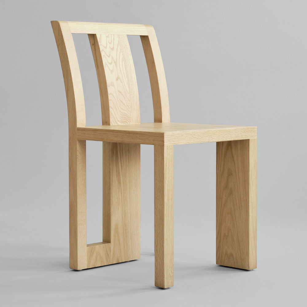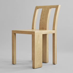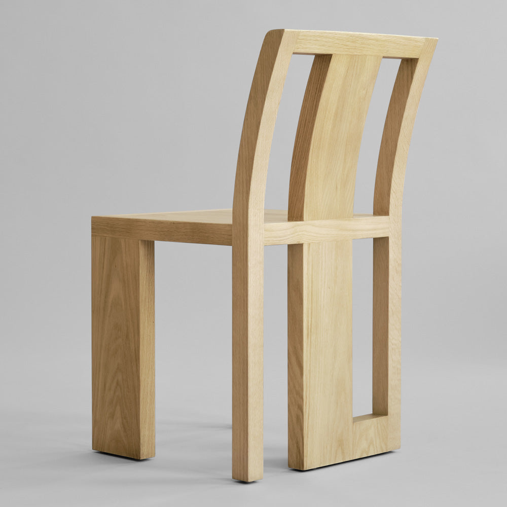 The Atsu Chair has a striking minimalistic design inspired by traditional Chinese chairs and meticulously crafted from FSC-certified American red oak. The Atsu’s asymmetrical structure serves as a sculptural statement: solid oak planks form one front leg and the centre backrest. The name "Atsu” - which derives from the Japanese word meaning "heavy” or ”strong” - perfectly embodies its visual weight and sense of balance.