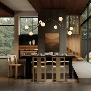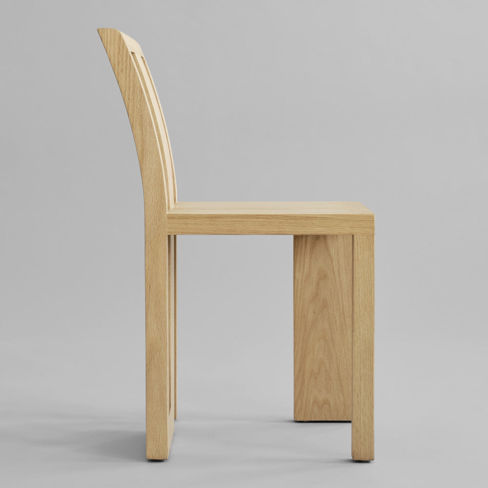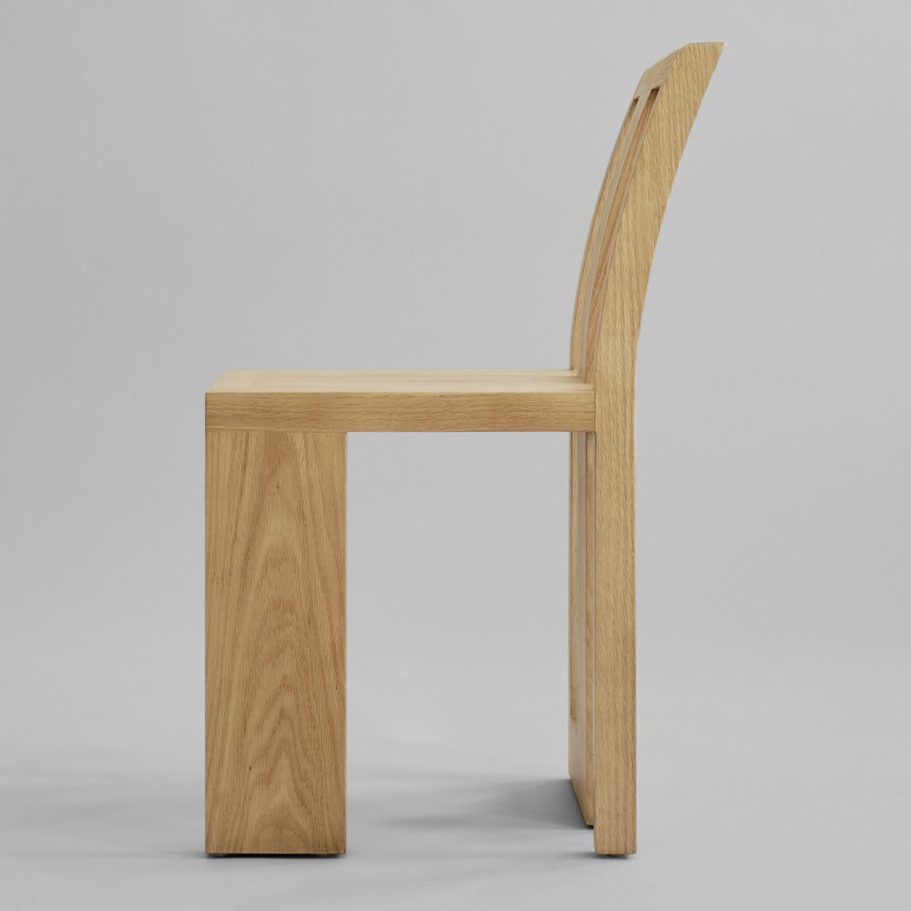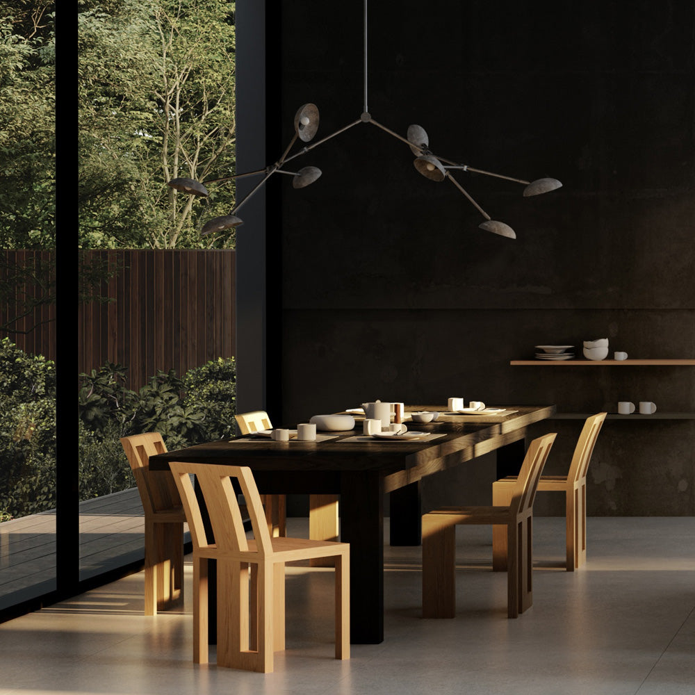 The Atsu Chair has a striking minimalistic design inspired by traditional Chinese chairs and meticulously crafted from FSC-certified American red oak. The Atsu’s asymmetrical structure serves as a sculptural statement: solid oak planks form one front leg and the centre backrest. The name "Atsu” - which derives from the Japanese word meaning "heavy” or ”strong” - perfectly embodies its visual weight and sense of balance.