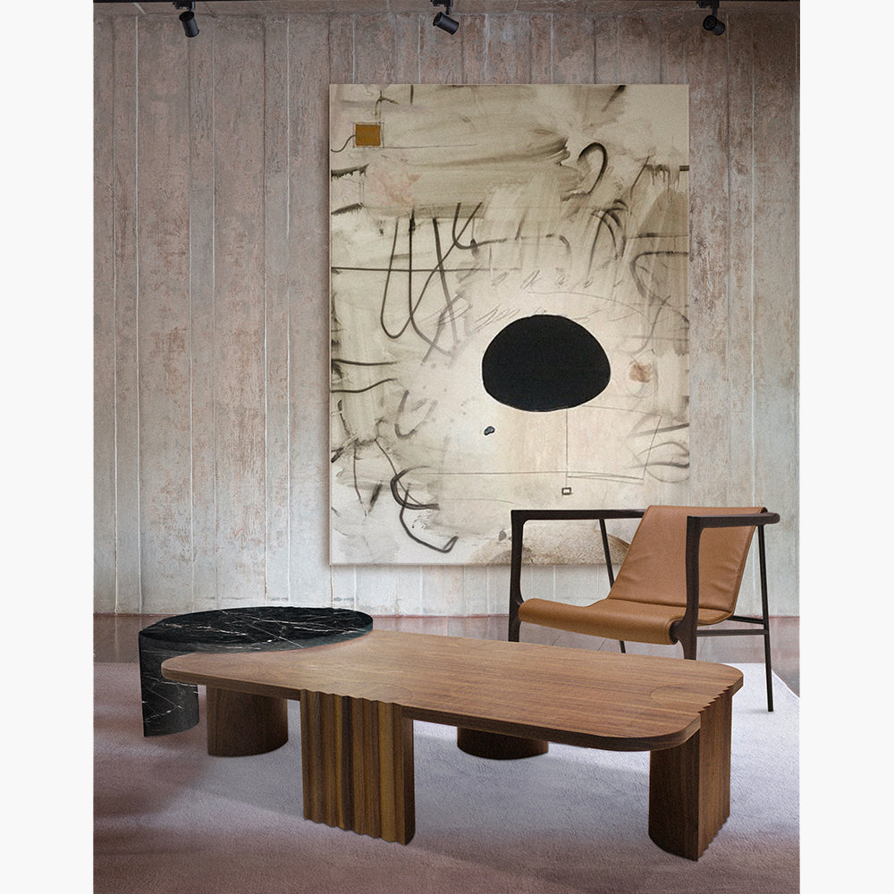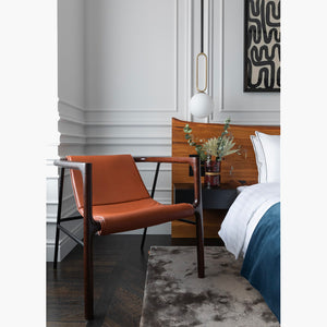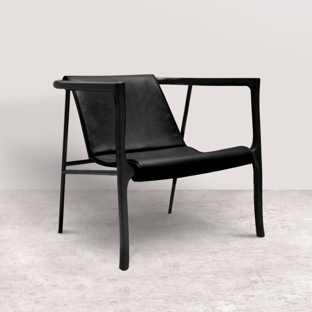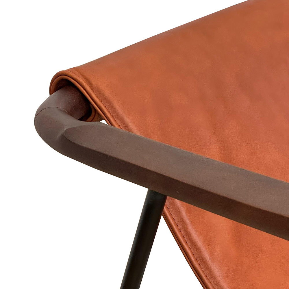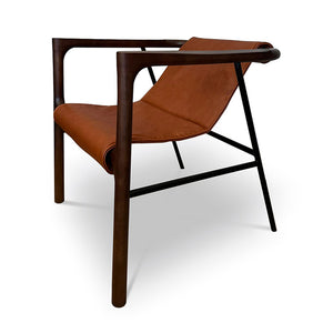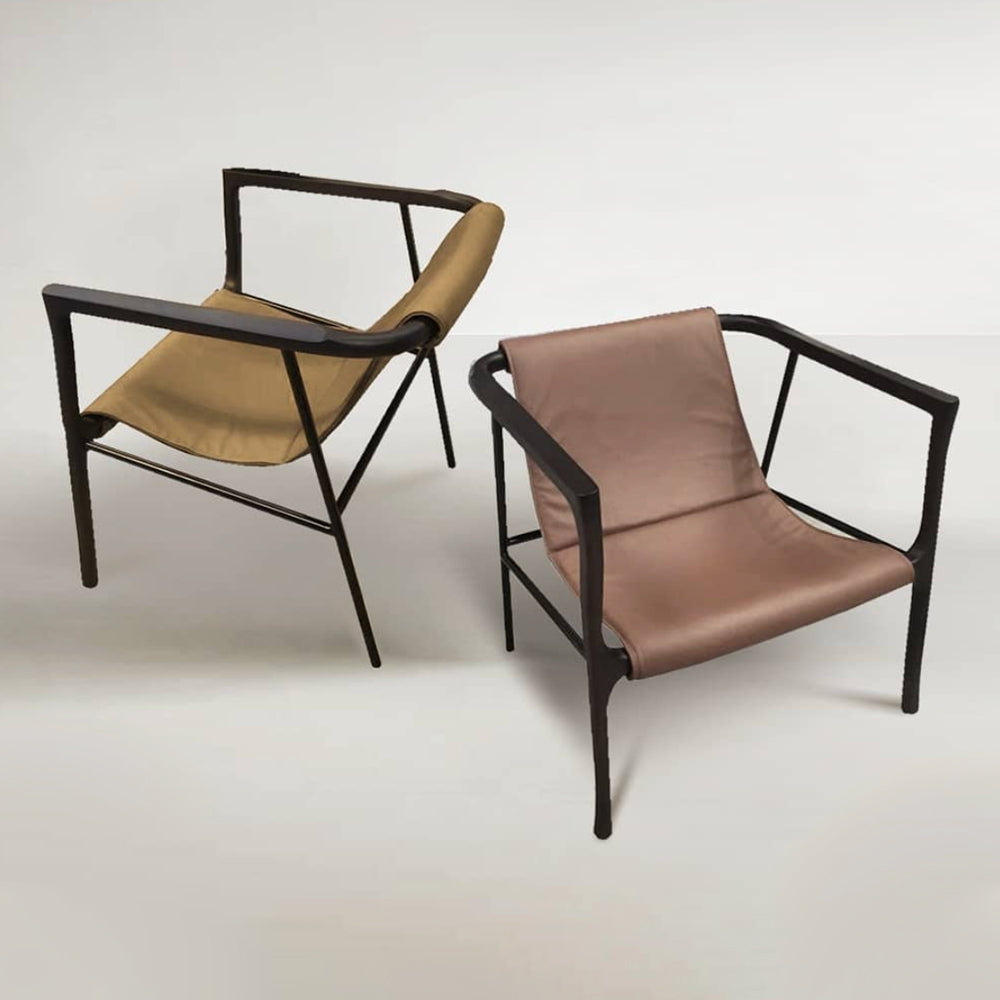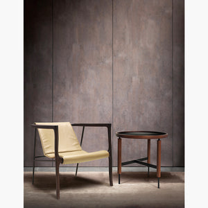 The Elliot Armchair is an elegant armchair with a design featuring a sleek leather seat supported by a metal frame with curved solid wood armrests. The bold shape and combination of materials impart a great deal of character to the chair. Alone or in pairs, covered in leather or fabric, the Elliot Armchair is the perfect complement for any sofa.