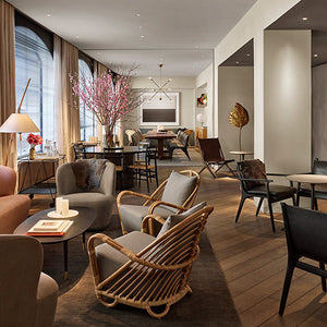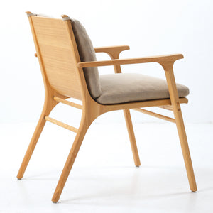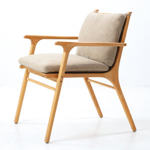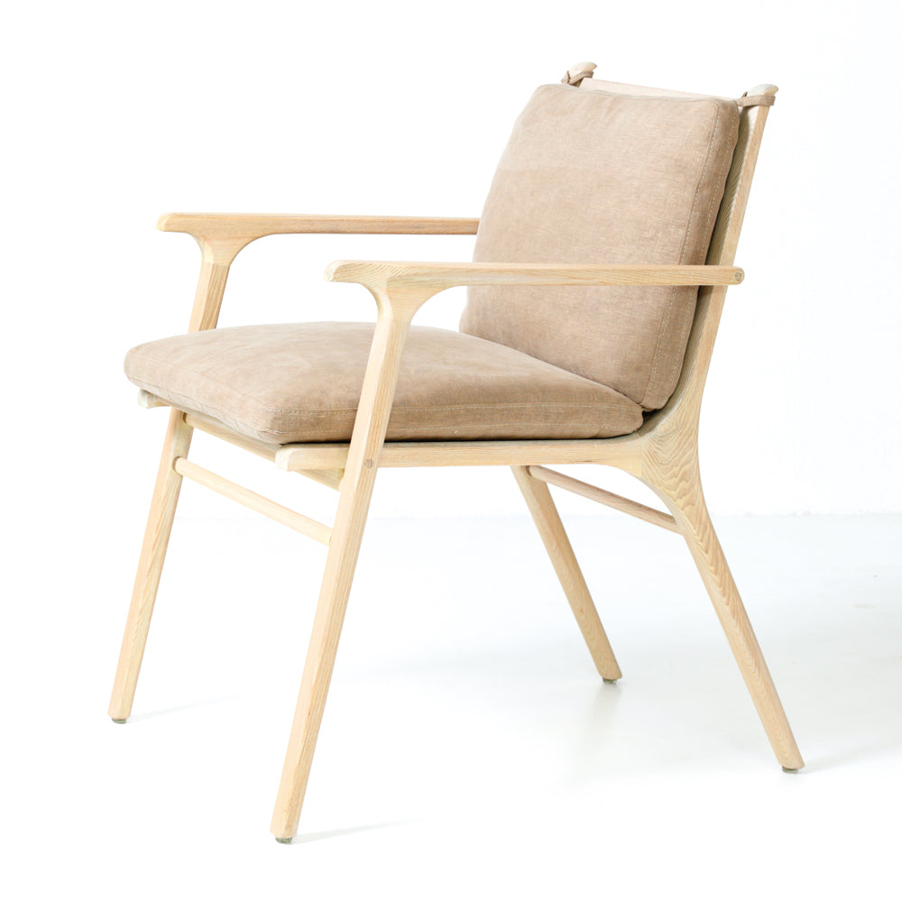 The Rén Dining Armchair is a luxuriously upholstered armchair. Rén was conceived in the Danish modern tradition – high quality, thoughtfully crafted design that balances function with form and is accessible to all. The Rén Dining Armchair is extraordinarily comfortable thanks to its feather down-filled seat and back cushions.