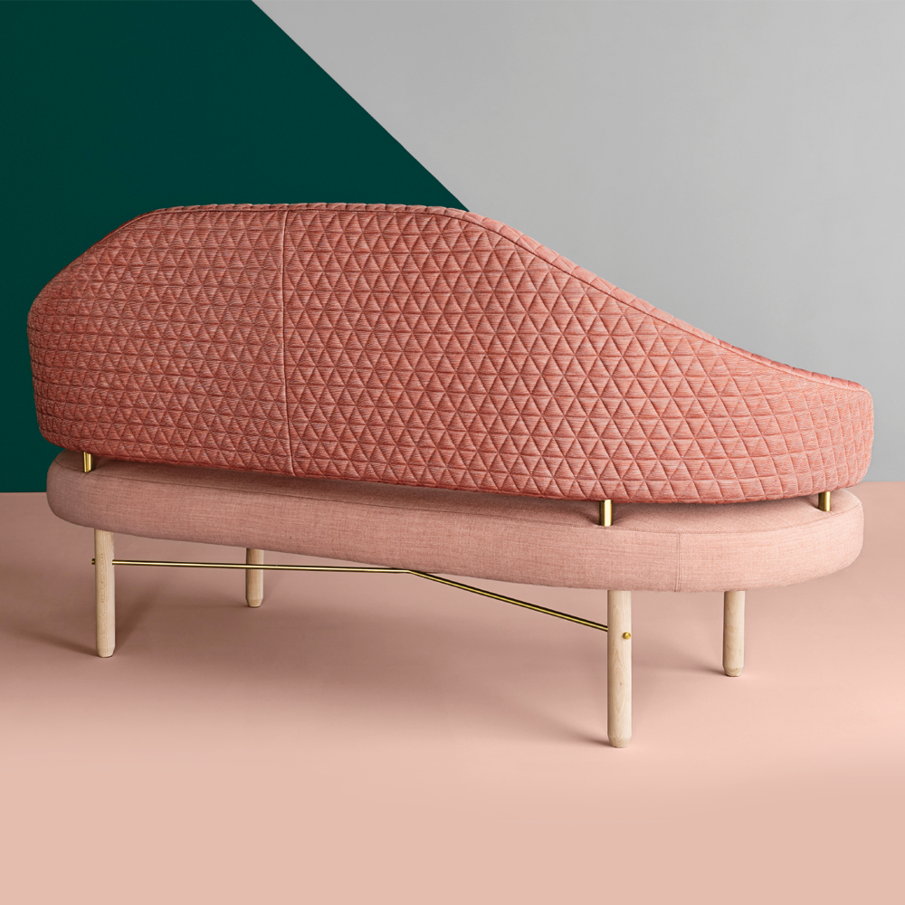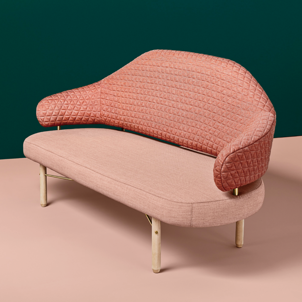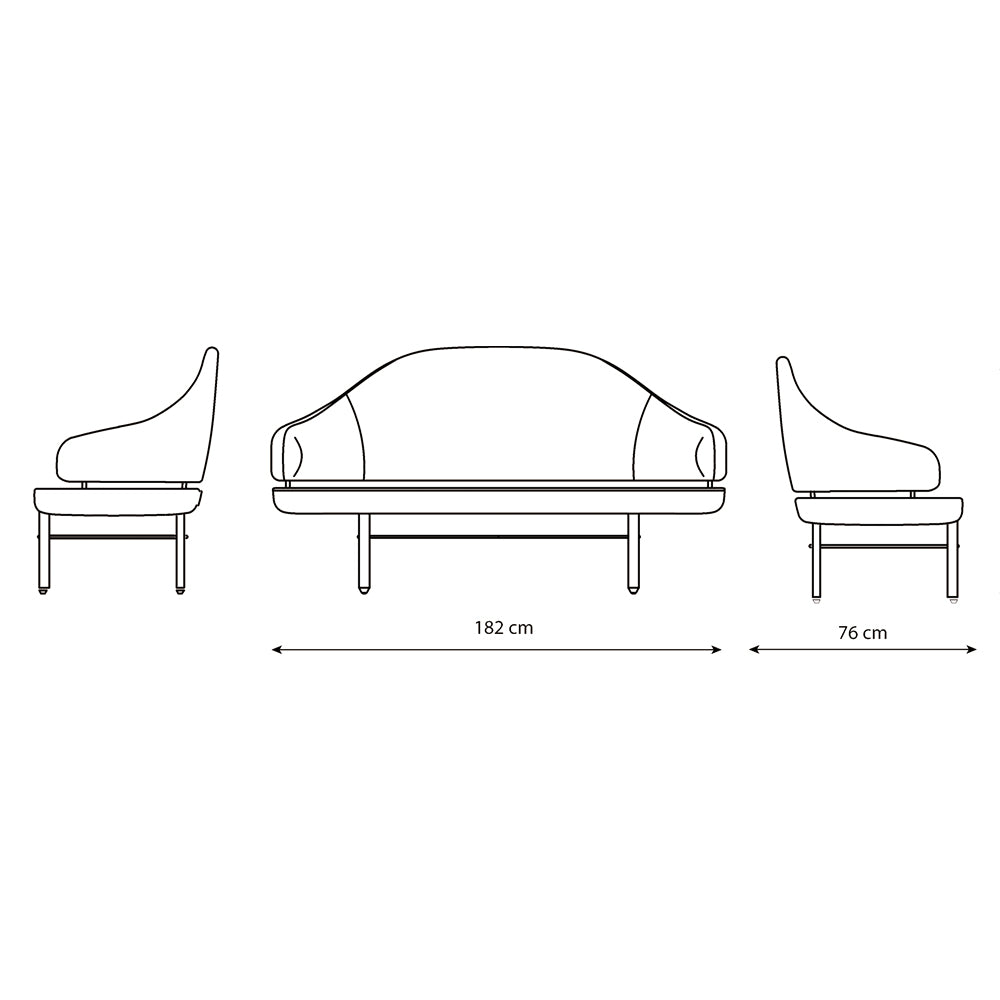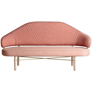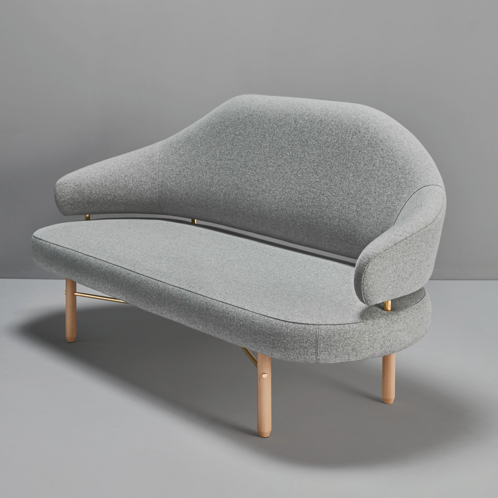 Simone is an eye-catching and compact sofa. Curvy and flirtatious, the sofa looks good from every angle, even from behind. This is a sofa which catches the attention of everyone in the room and does not want to be pushed against the wall. The back and seat of the sofa are separated by elegant gold metal tubes, a detail repeated in the legs of the sofa.