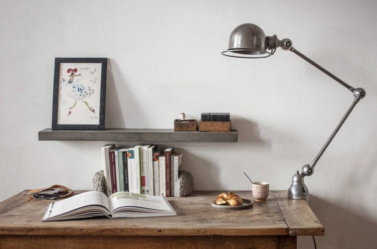 The Sliced Concrete Shelf - Large (90 cm) is sleek and minimal, a neutral backdrop which enhances things which are placed on it. Perfect for those who want to create an industrial look. This lightweight and sturdy shelf is a great solution to display your favourite vinyl record or books.