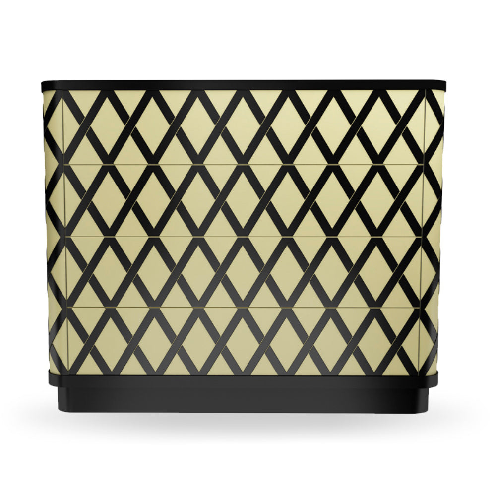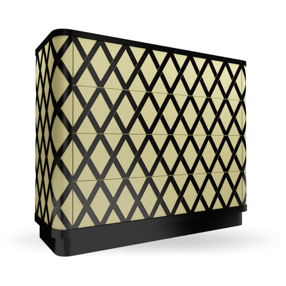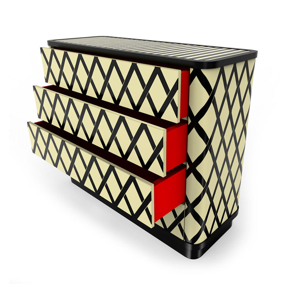 The Vanilla Noir Napoleon Chest Of Drawers is an elegant and versatile chest of drawers. There are four large drawers, with their inside lacquered in Rosso red. The Vanilla Noir Napoleon Chest Of Drawers is available in only one finish.