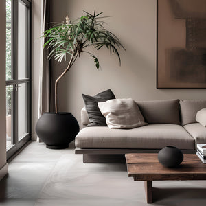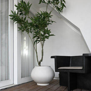 Sunao Plant Pot Fat - Hexa draws its name - Sunao - from the Japanese word for "being honest", which perfectly encapsulates the simplicity of its shape. Sunao is available in two finishes: birch and black. Sunao is made in hand glazed ceramic with a mat texture. Glazed on the inside with a waterproof lacquer, Sunao is 100% waterproof and can be used also for fresh flowers.