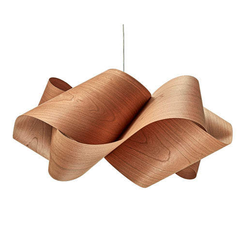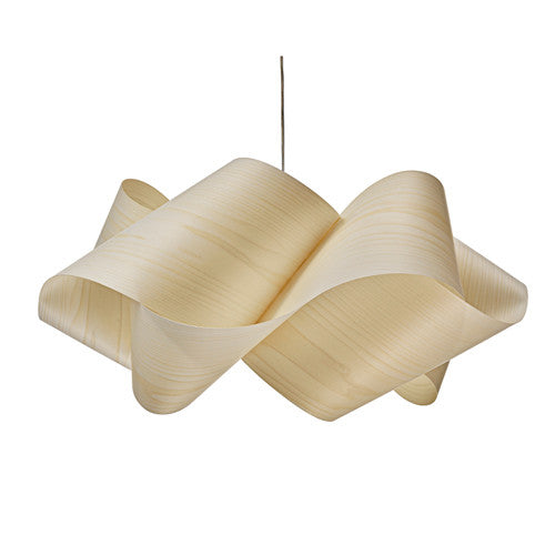 After designing the Link family of lights for LZF, Irishman Ray Power created the Swirl suspension light with the same rigorous study of form and geometry.  Made up of Moebius strips of wood veneer swirling into one another, it confers warmness thanks to an interesting light and shadow play.  The Swirl suspension light is available in small and large versions with the wood veneer available in ten different finishes, thus providing endless options for customisation.  The Swirl suspension light comes with a metal base plate in nickel or gold finishes.