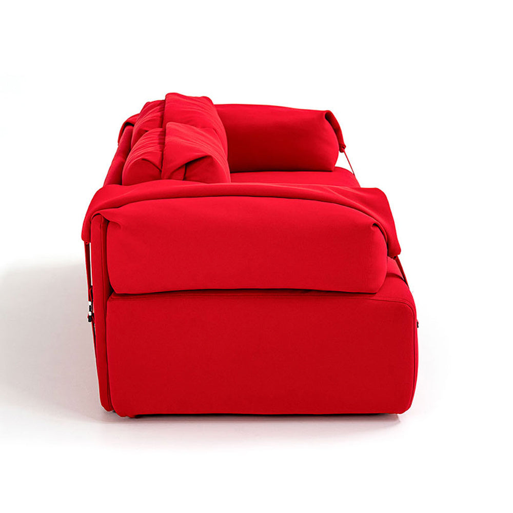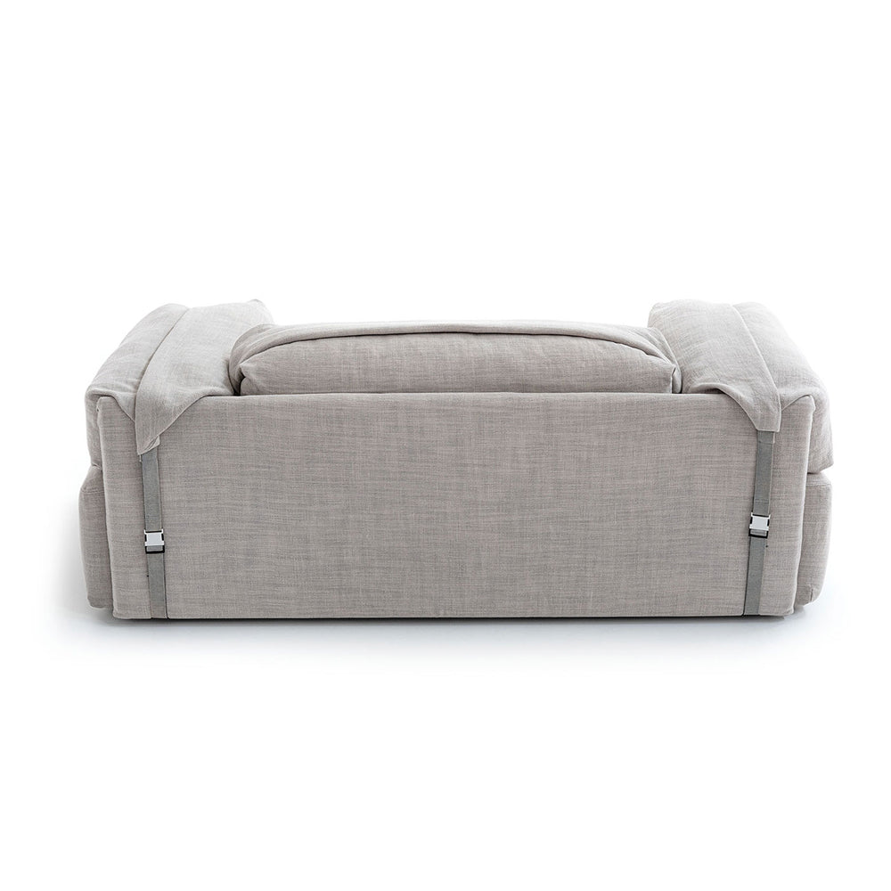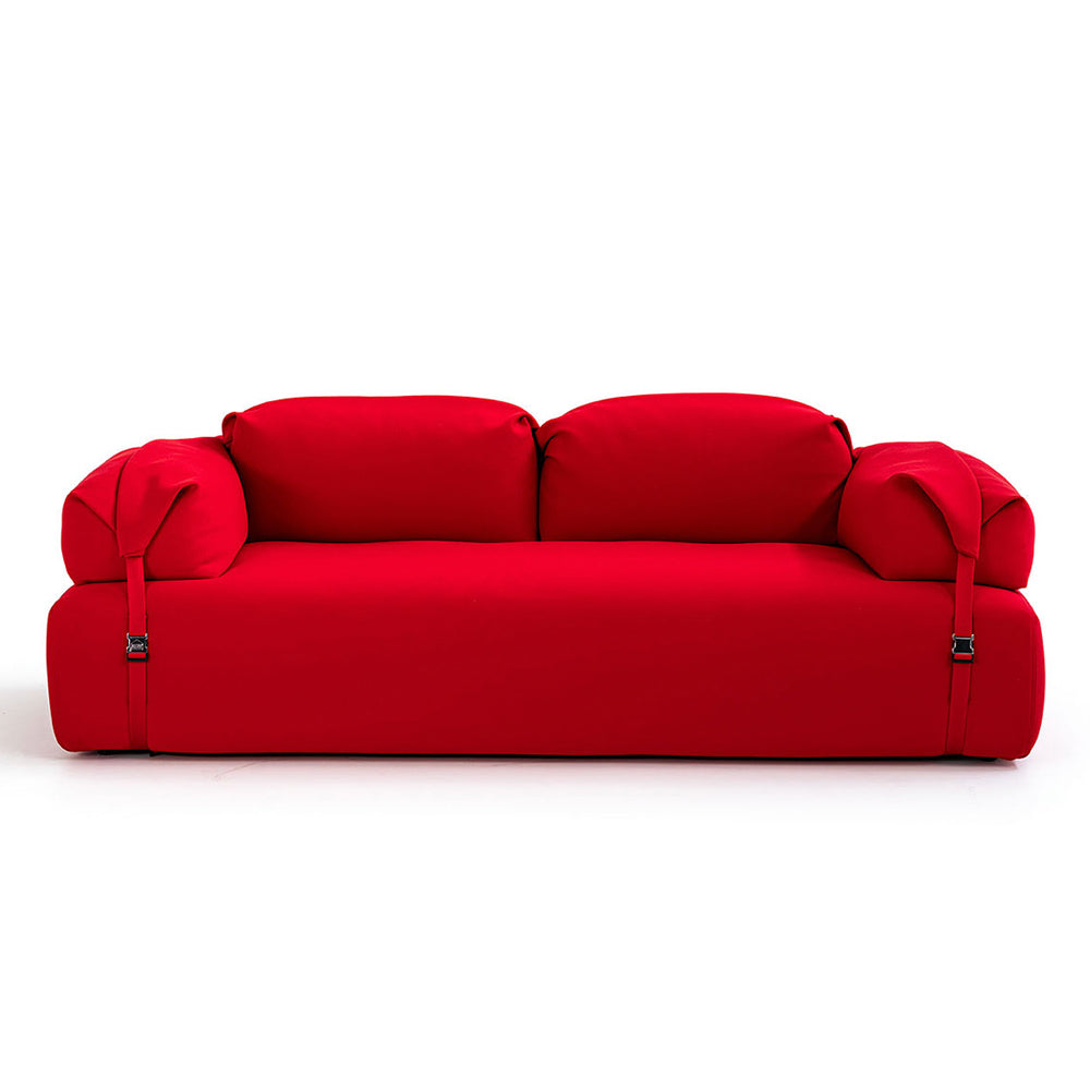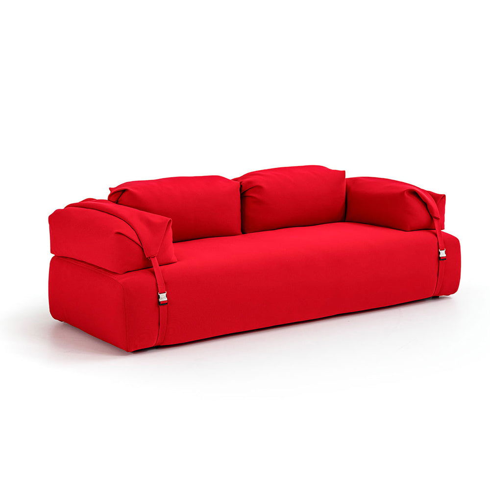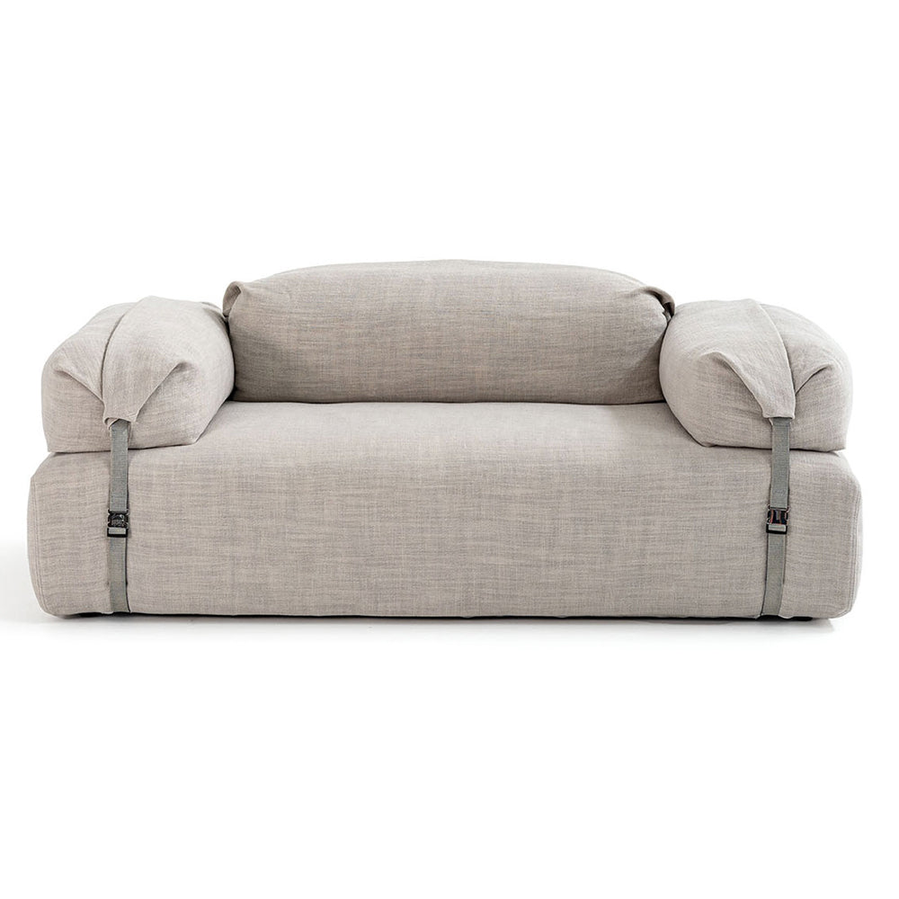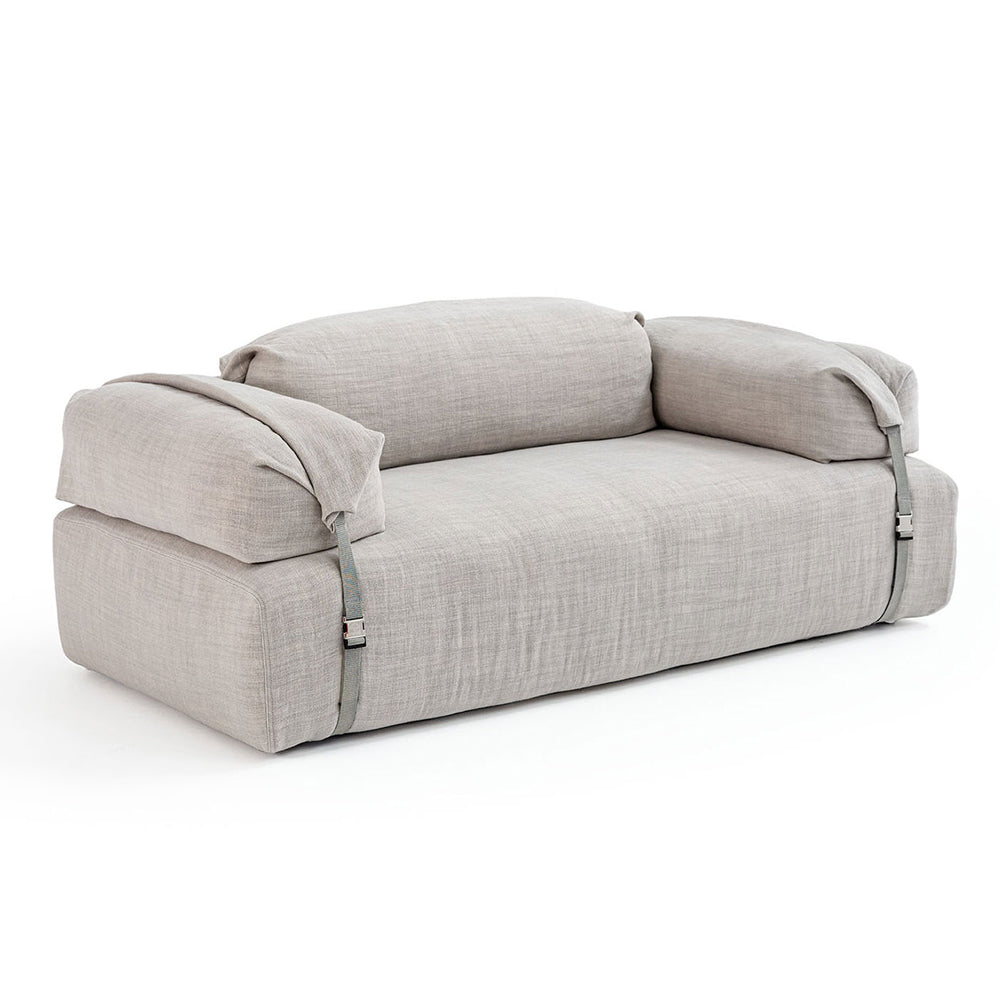 The design of the D-Uffle sofa is inspired by duffle bags and other outdoor travel items, hinting at today’s dynamic lifestyles, characterised by activity and relaxing moments at home with friends. The D-Uffle sofa features generously proportioned armrests and cushions with straps that secure the cushions to the seat, giving the sofa a casual and highly distinctive appearance. D-Uffle is available as a sofa (in two sizes), an armchair and a pouf.