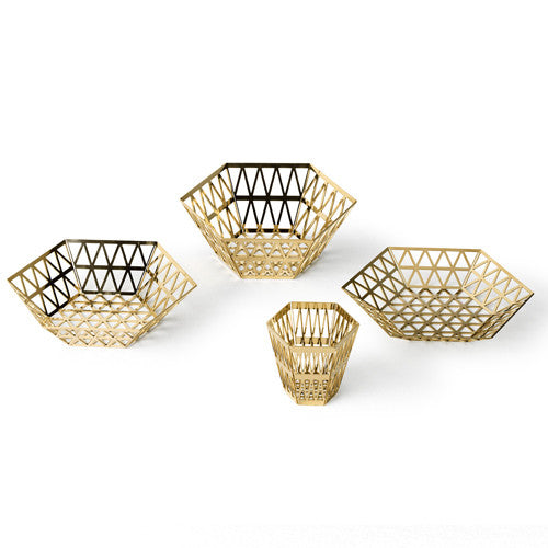 The Tip Top series of accessories all share the same curious visual effect. When viewed from above, the triangles which form the structure of the tray all look the same size. It is only when you look at it sideways then you see the triangles stretched to create the delicate lattice walls of the hexagonal structure. The Tip Top Medium Tray is a charming and practical accessory which would look great on any dining table, kitchen counter or display shelf.